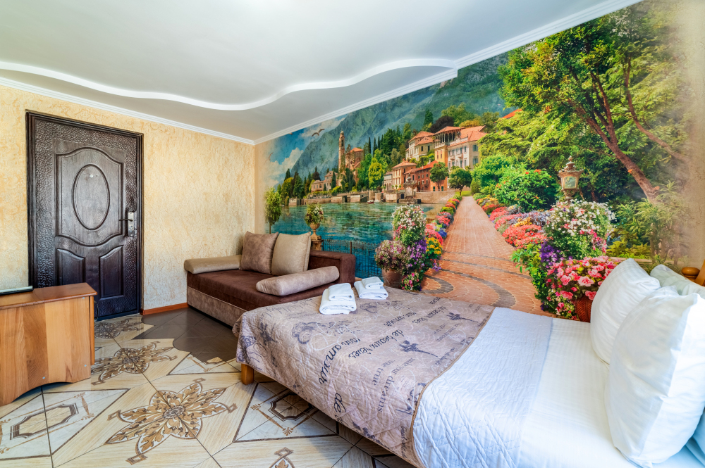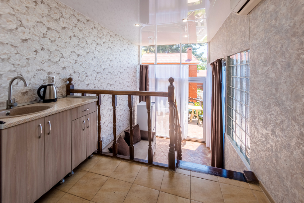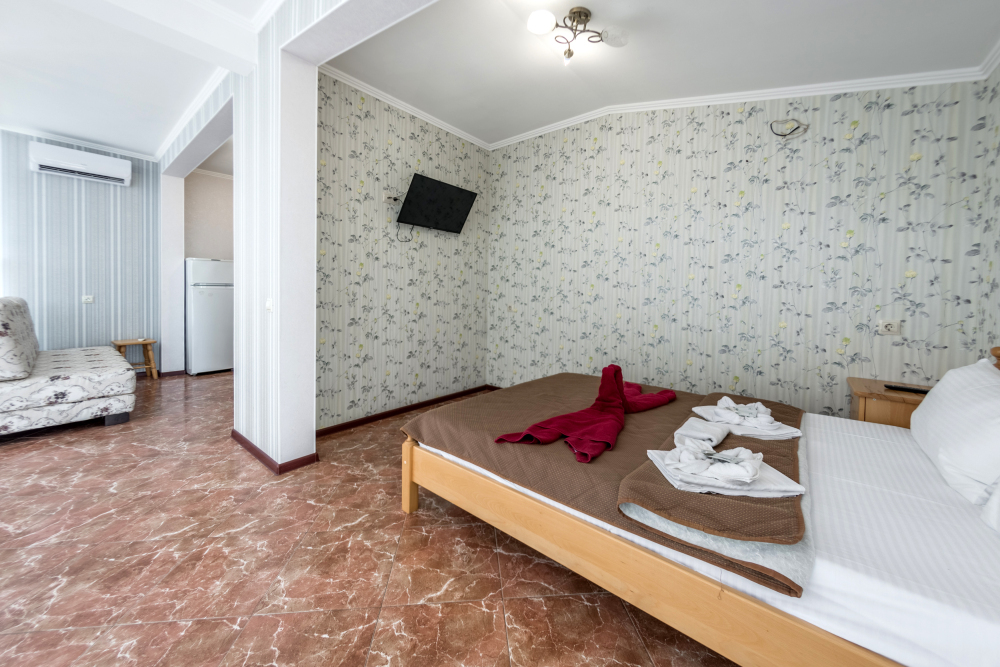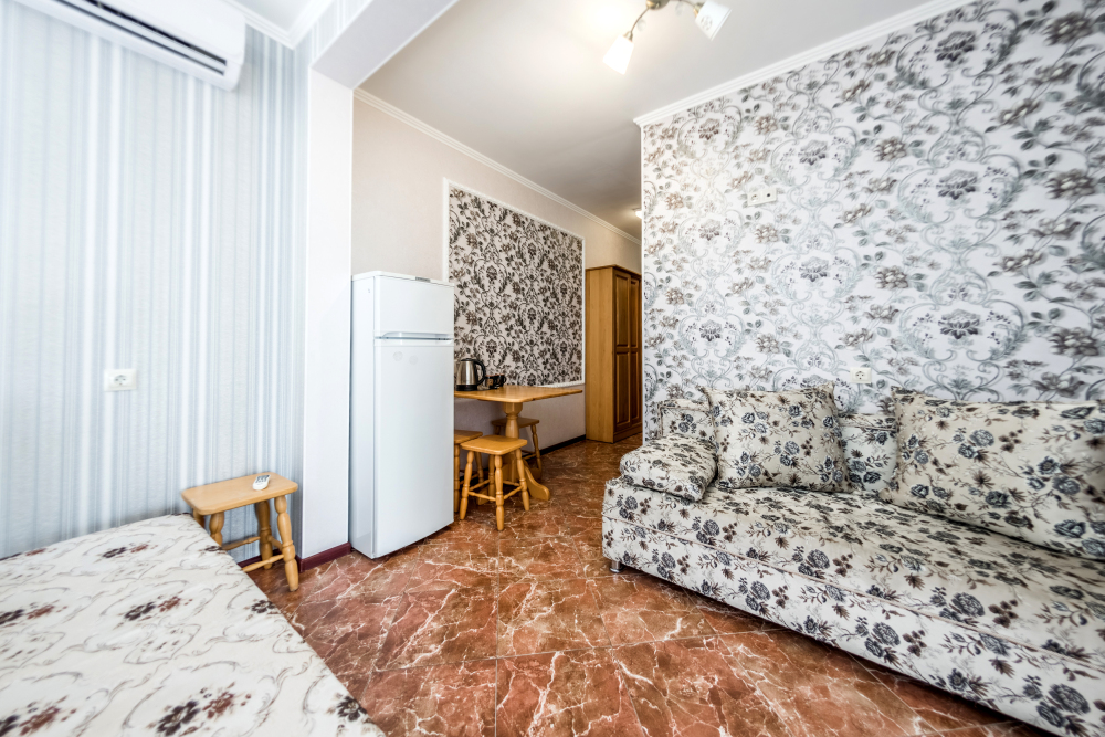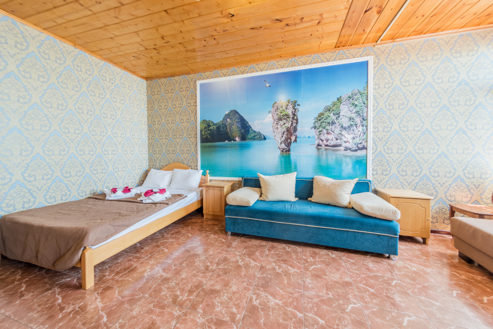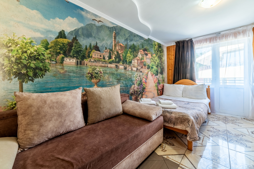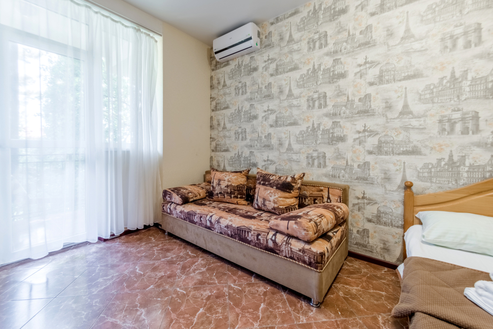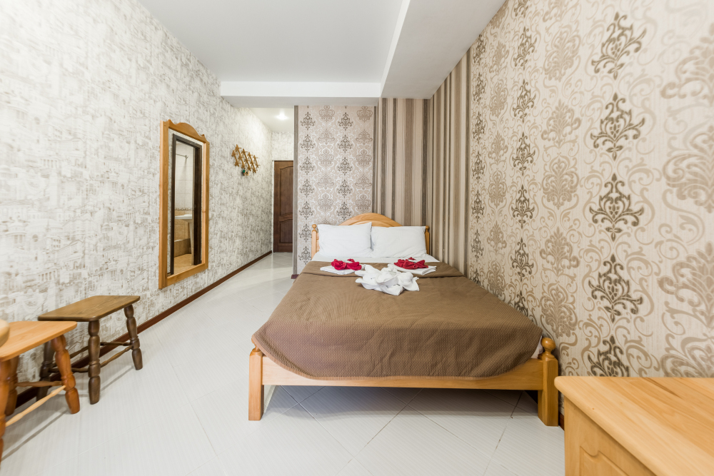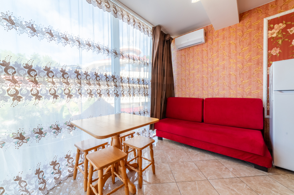 Отель располагается в курортном поселке Лоо, в 5-10 минутах неспешной ходьбы от моря, в 12 км от центра г. Сочи.