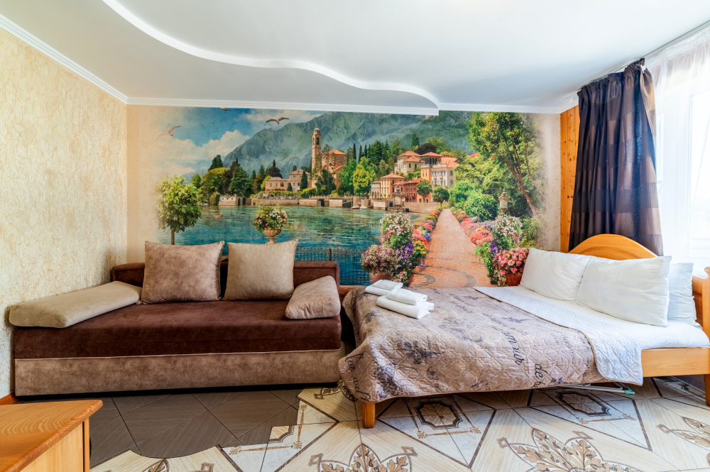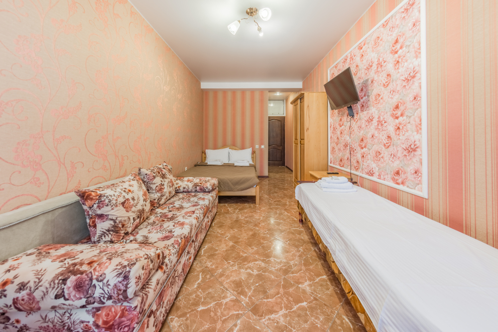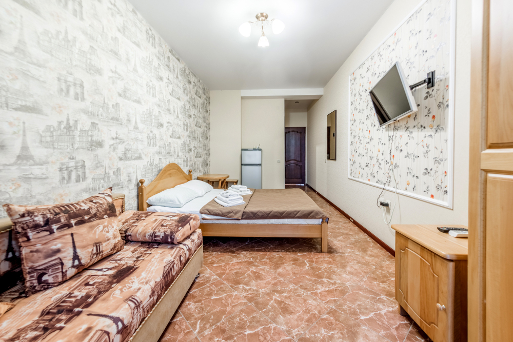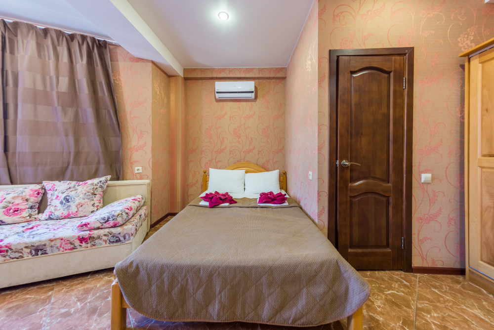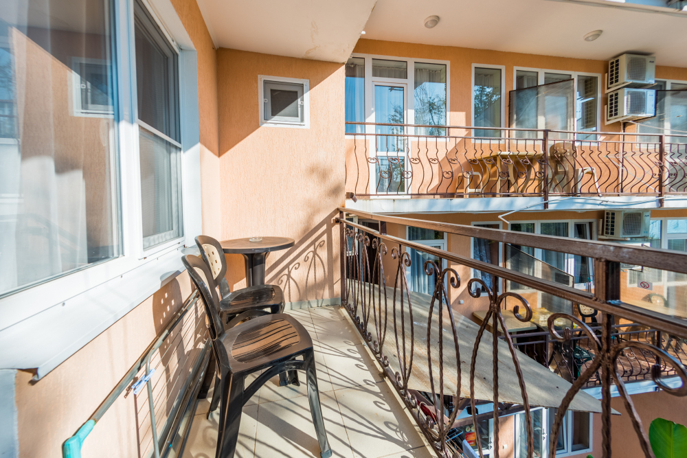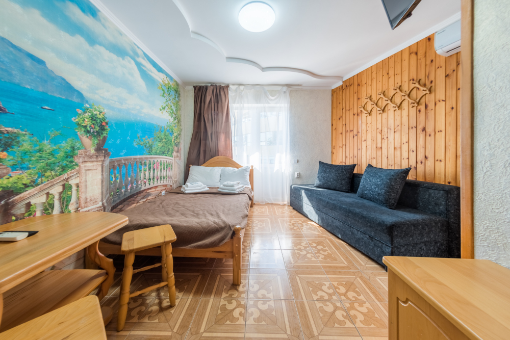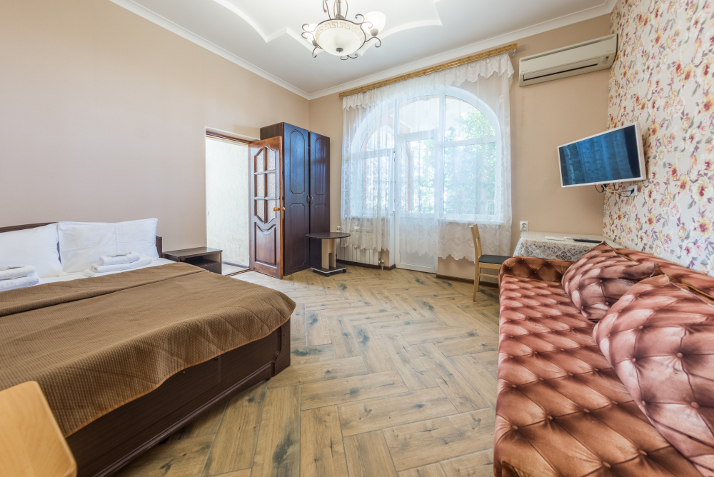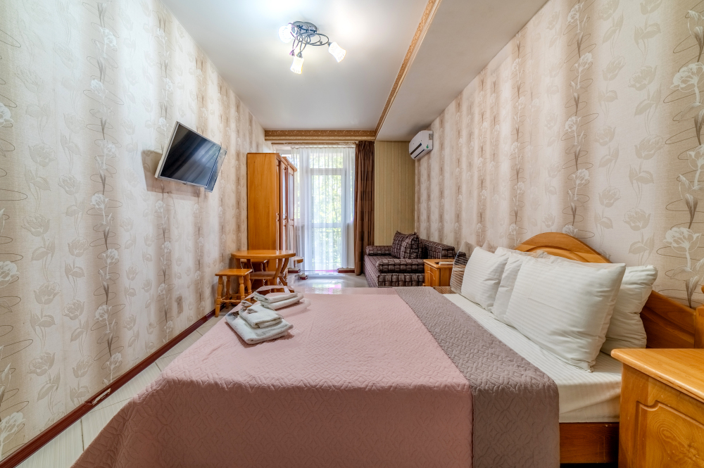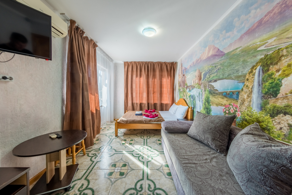 Отель располагается в курортном поселке Лоо, в 5-10 минутах неспешной ходьбы от моря, в 12 км от центра г. Сочи.