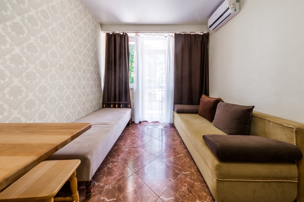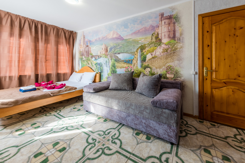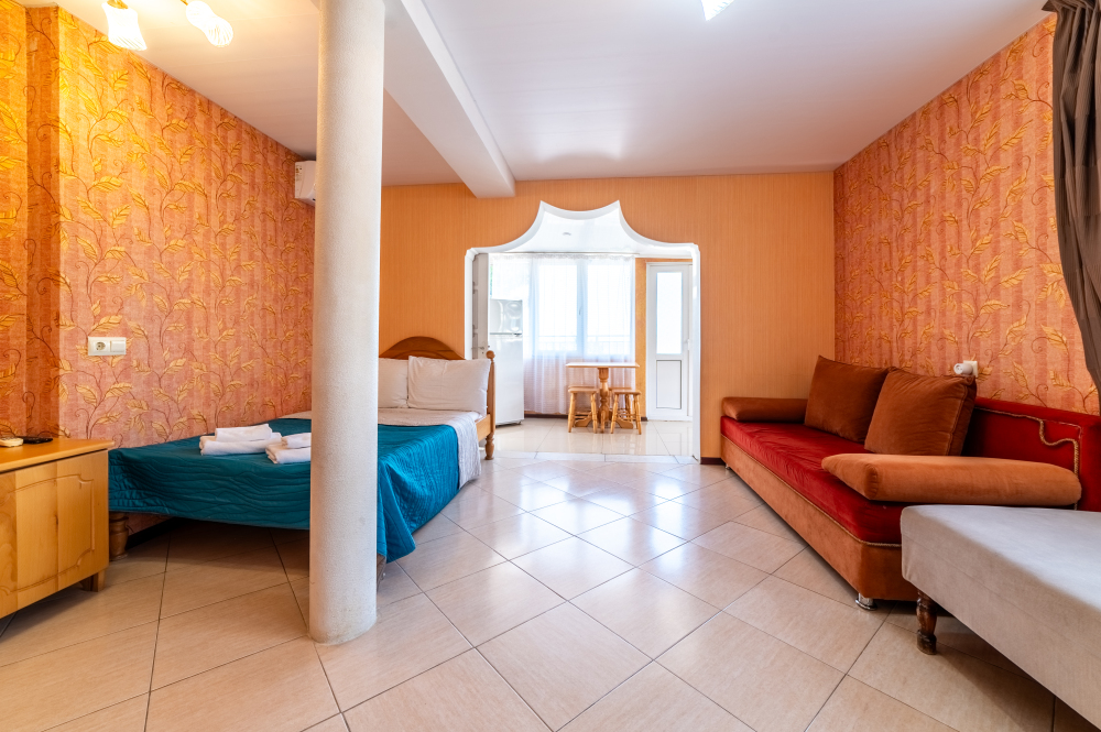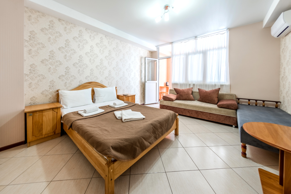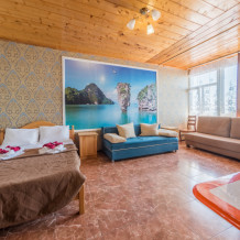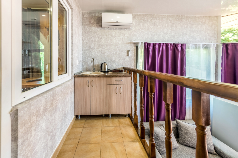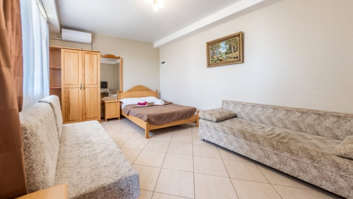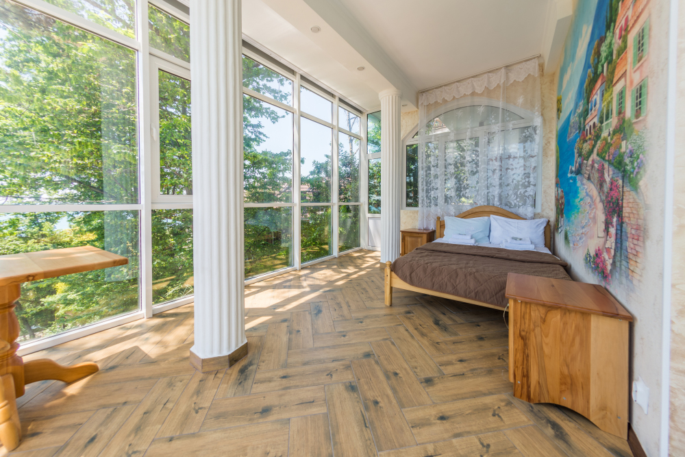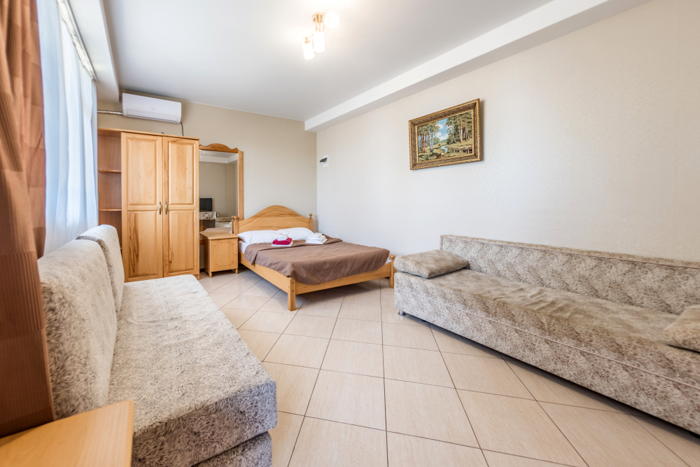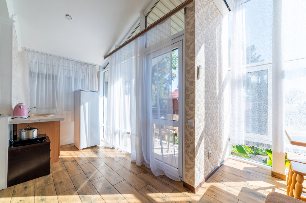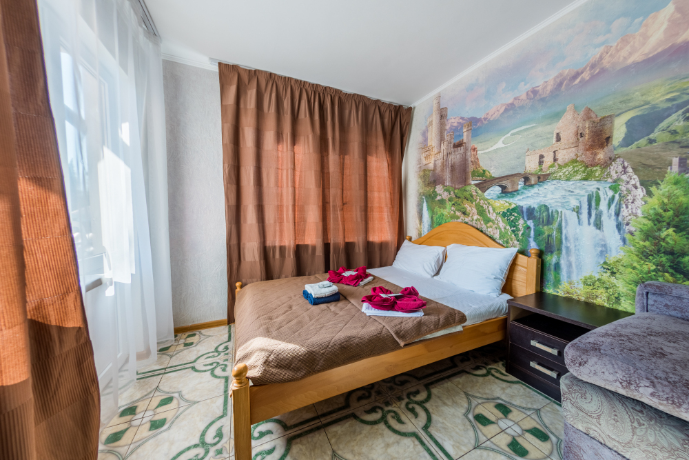 Отель располагается в курортном поселке Лоо, в 5-10 минутах неспешной ходьбы от моря, в 12 км от центра г. Сочи.