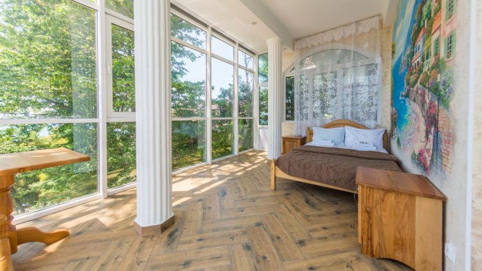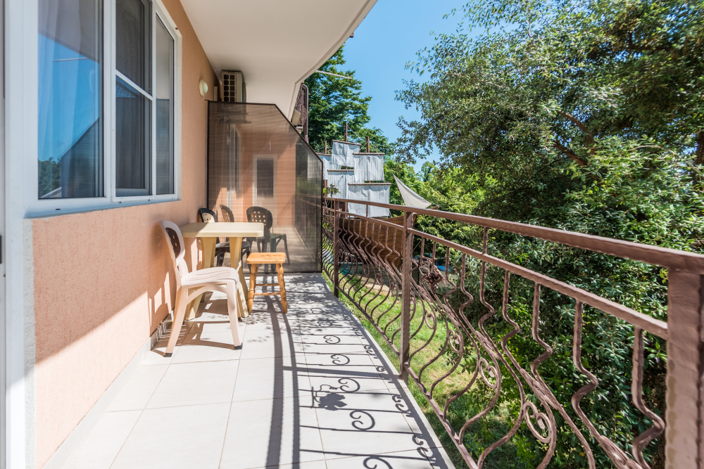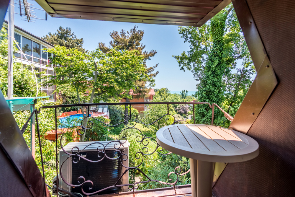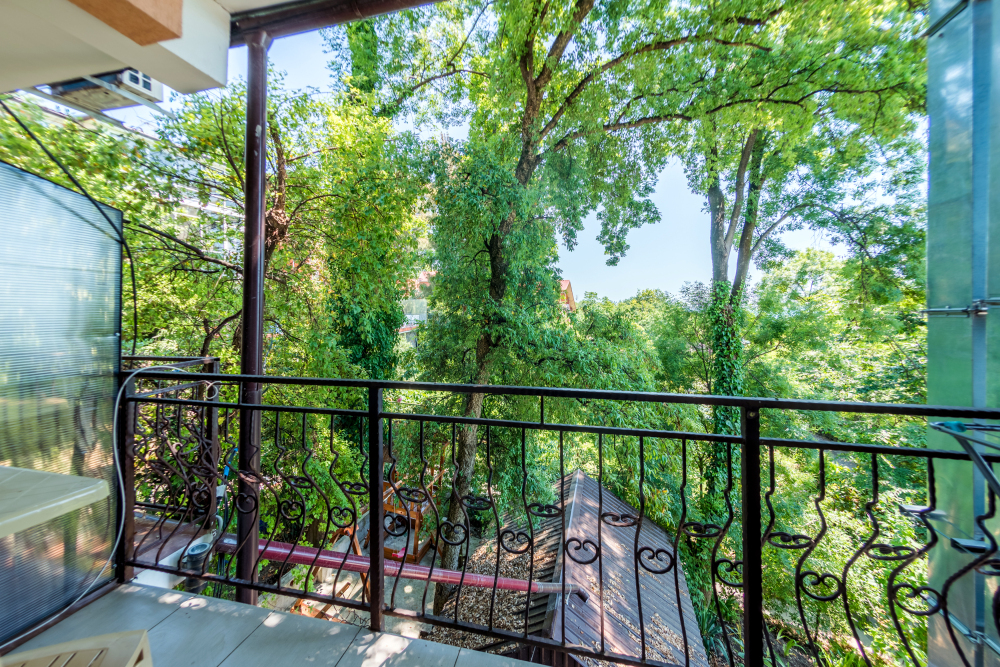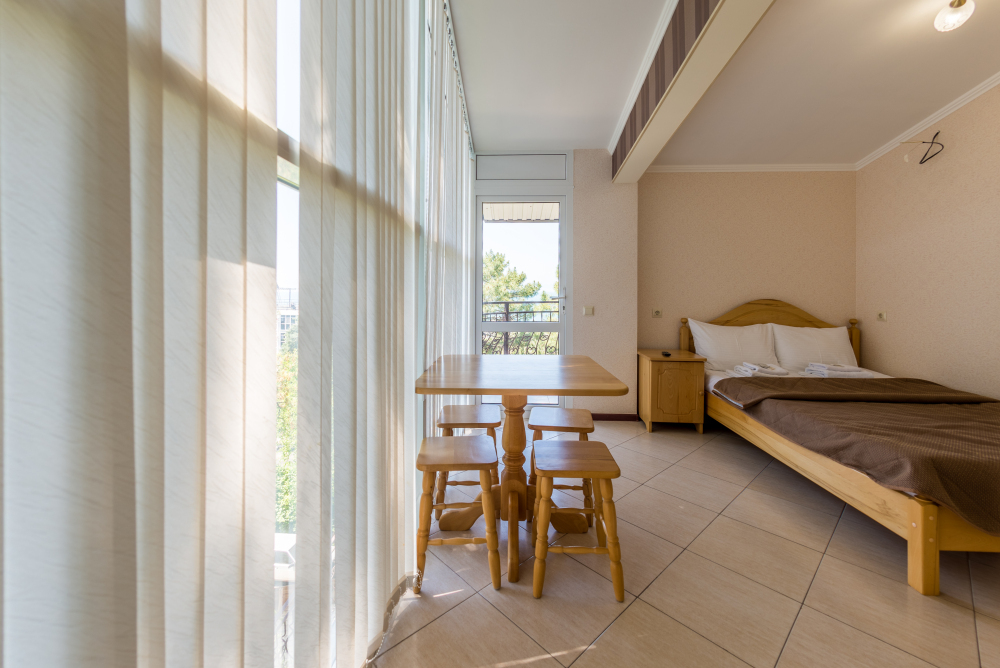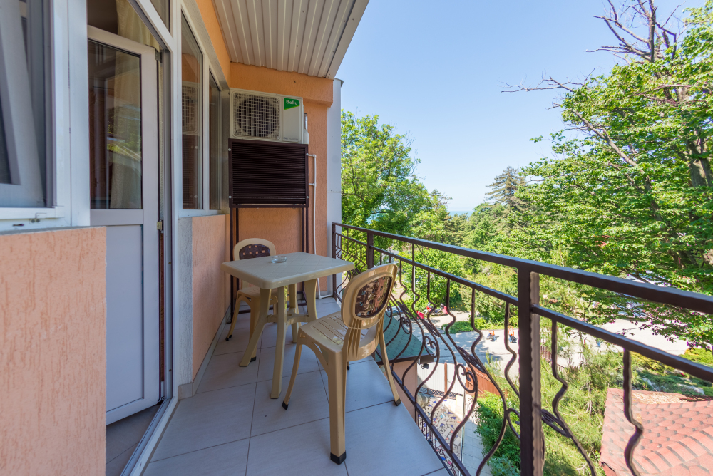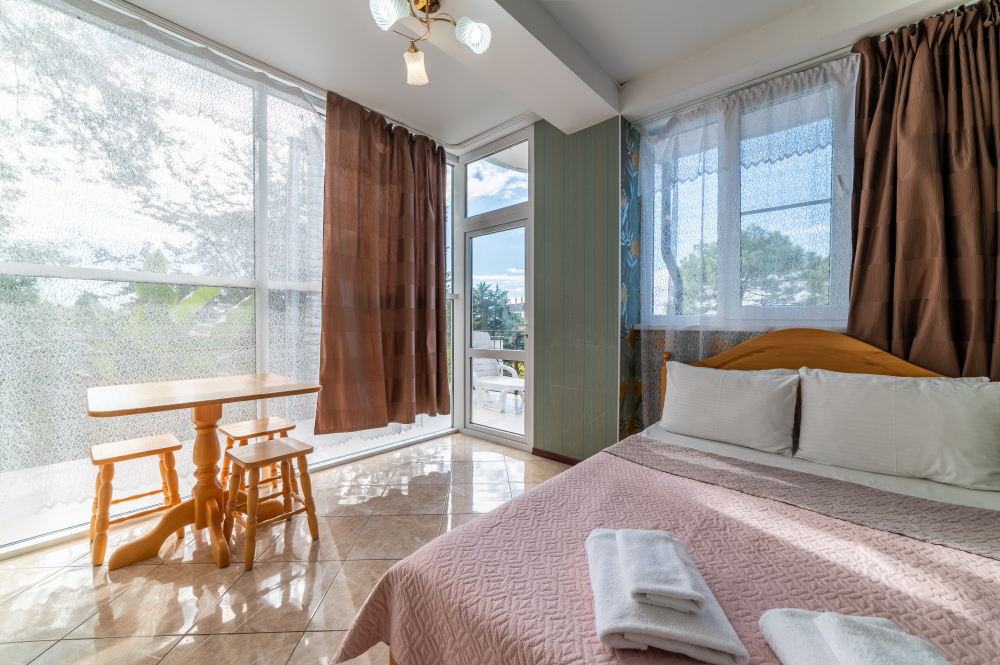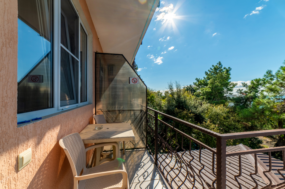 Он отделен от транспортных магистралей лесным массивом с реликтовыми соснами и пробковым дубом. Для Ваших прогулок огромная парковая зона с экзотическими южными растениями.