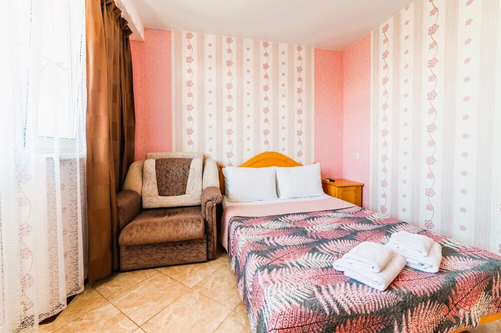 В рядом расположенных пансионатах можно пройти курс лечения, а также посетить анимационные программы (бесплатно), дискотеки, поиграть в боулинг, бильярд. На расстоянии 50 метров от отеля находятся два ресторана работающие по системе «шведский стол». На пляже расположены кафе, бассейн «инфинити», есть набережная для прогулок. Аквапарк «Аквалоо» расположен в 10 минутах ходьбы.