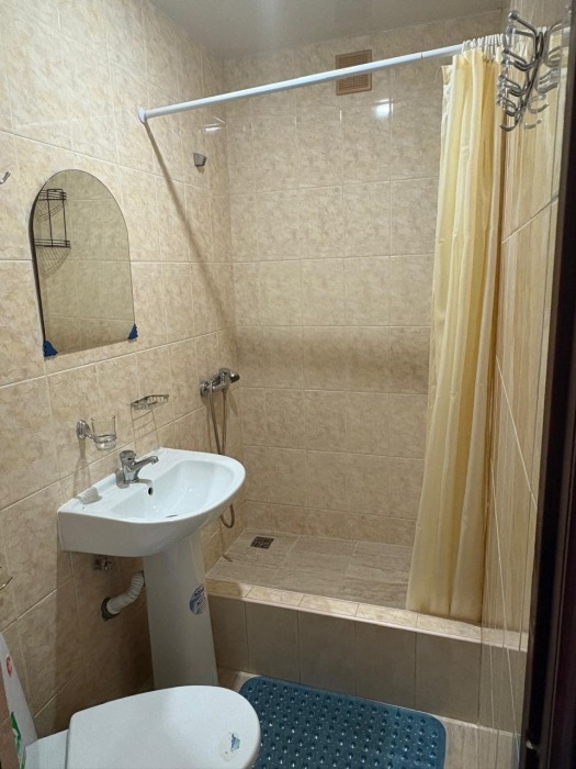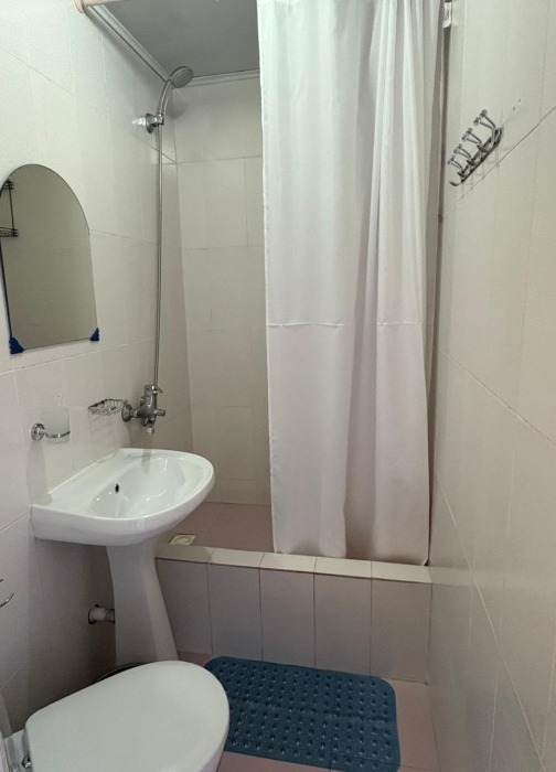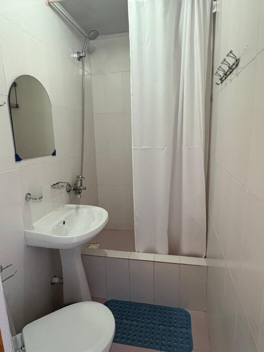 Индивидуальная ванная комната: душ, раковина, туалет.