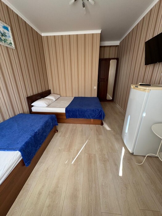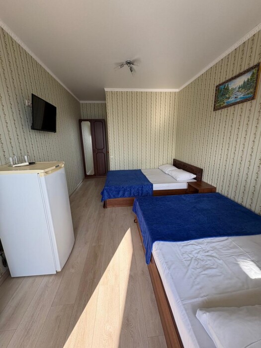 В номере: 1 двуспальная, 2 односпальные кровати и 1 кресло-кровать.