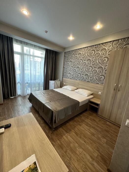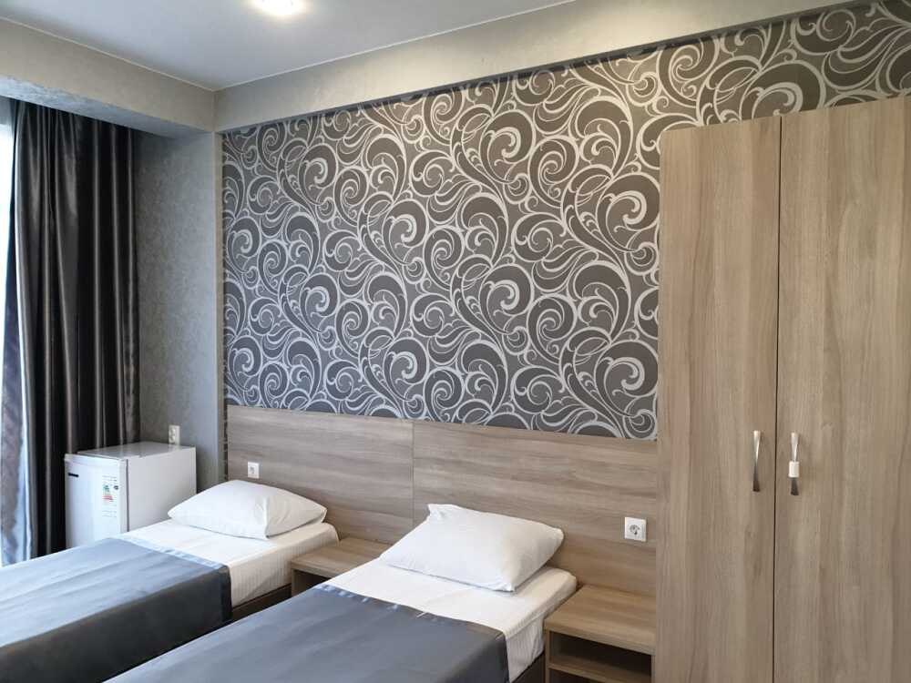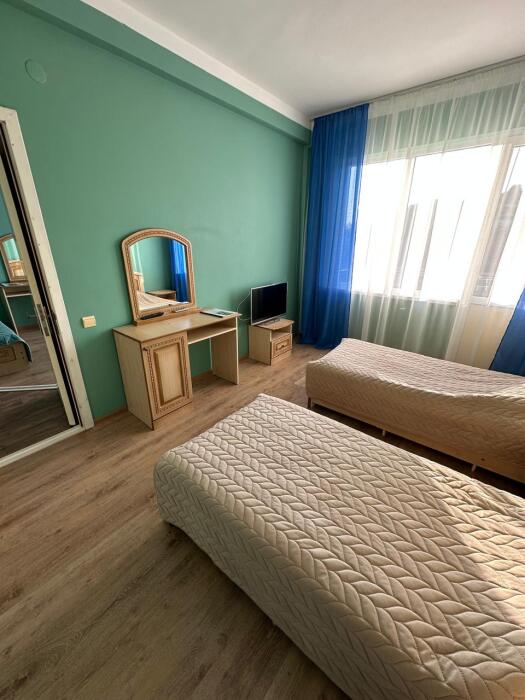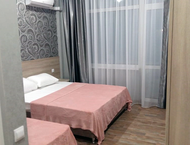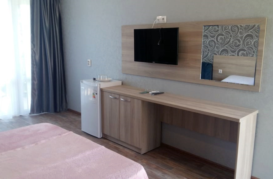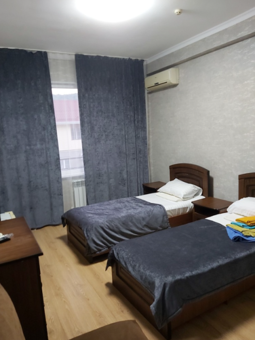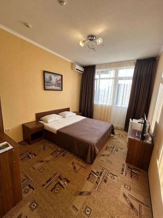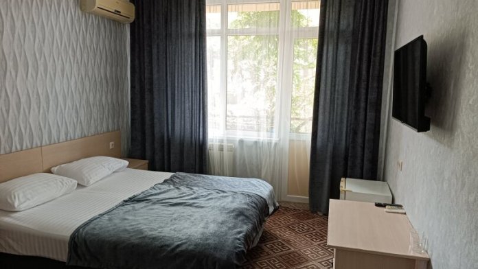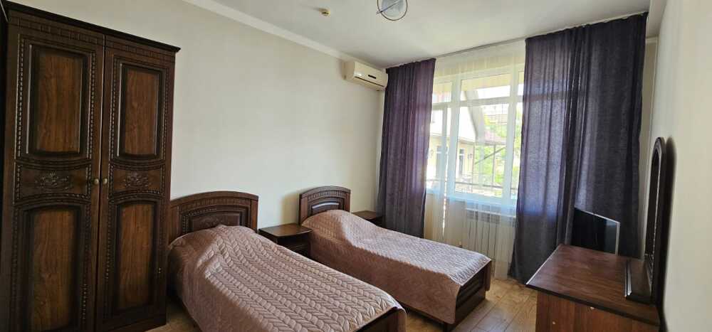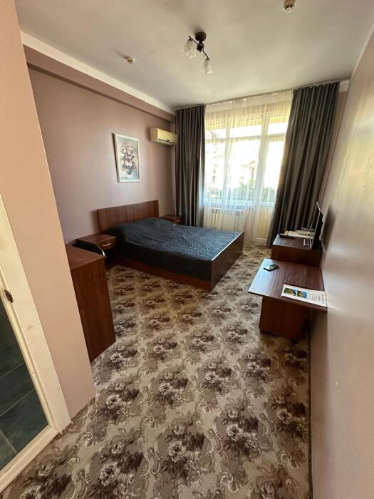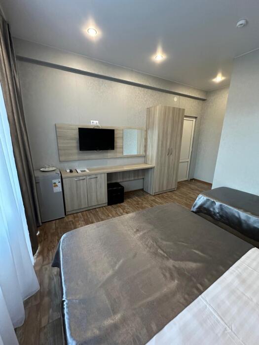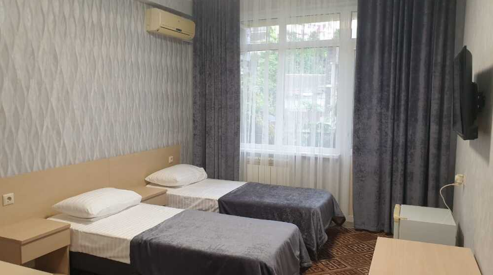 Трёхместные номера стандарт расположены на втором и третьем этажах. Номера с индивидуальным балконом. В номере двухспальная кровать и односпальная ,шкаф, туалетный столик с зеркалом , тумбочки , холодильник ,кондиционер и телевизор , фен, комплект полотенец , постельное белье . Душ и туалет находят ся в номере . ,