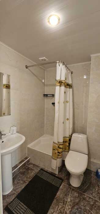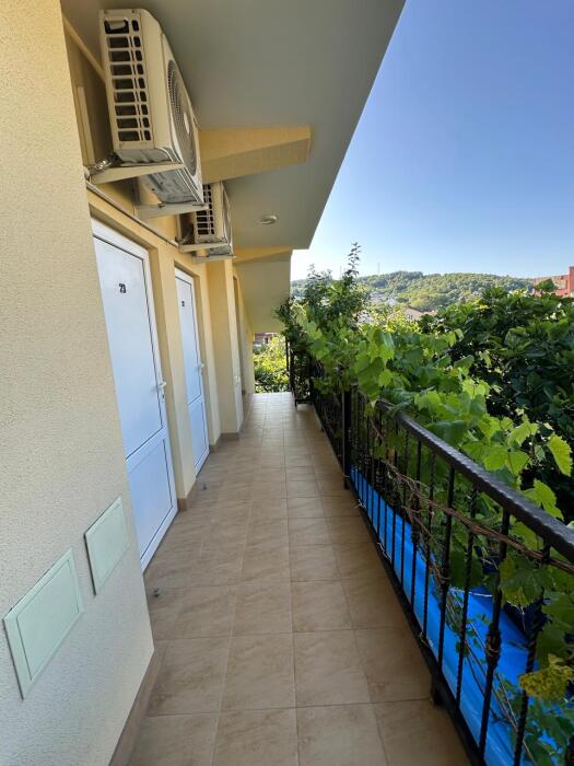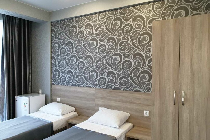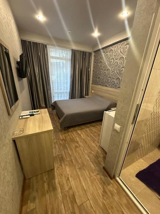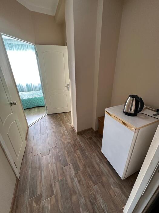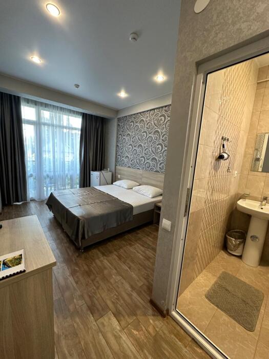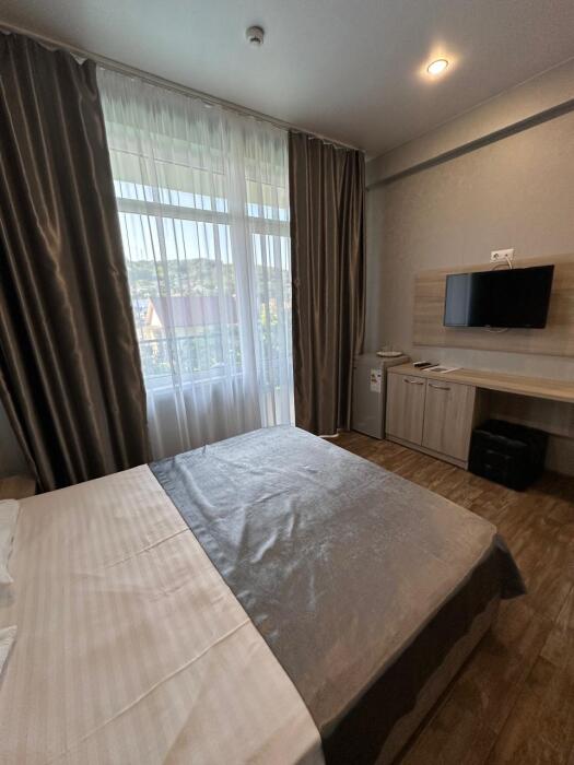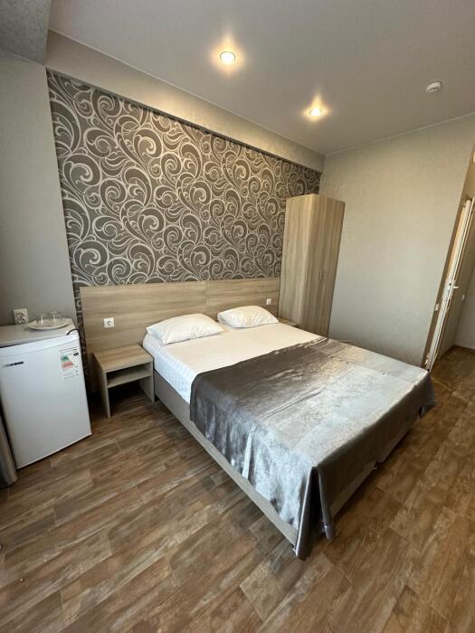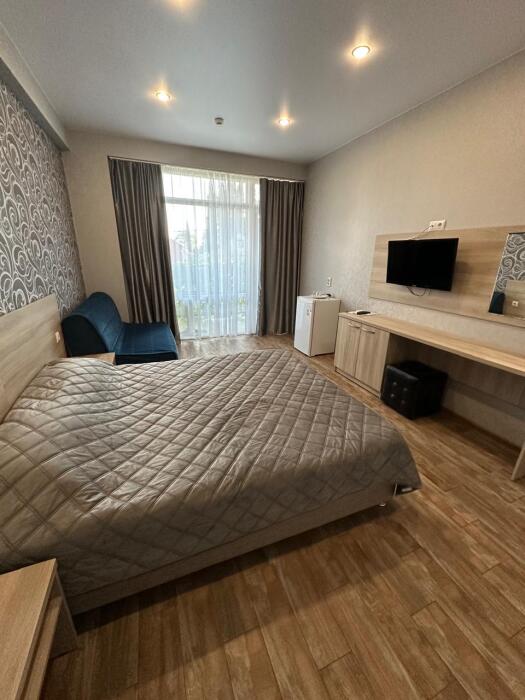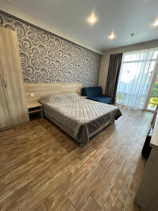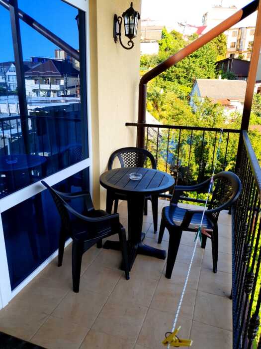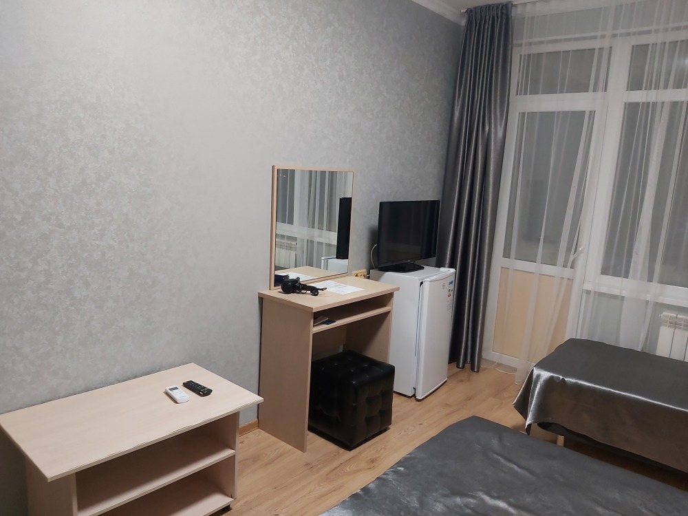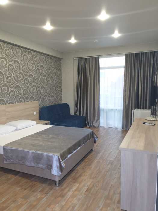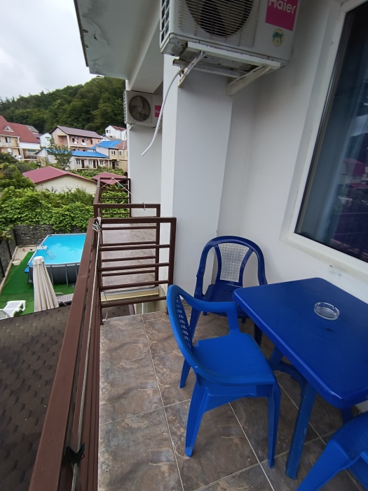 Трёхместные номера стандарт расположены на втором и третьем этажах. Номера с индивидуальным балконом. В номере двухспальная кровать и односпальная ,шкаф, туалетный столик с зеркалом , тумбочки , холодильник ,кондиционер и телевизор , фен, комплект полотенец , постельное белье . Душ и туалет находят ся в номере . ,