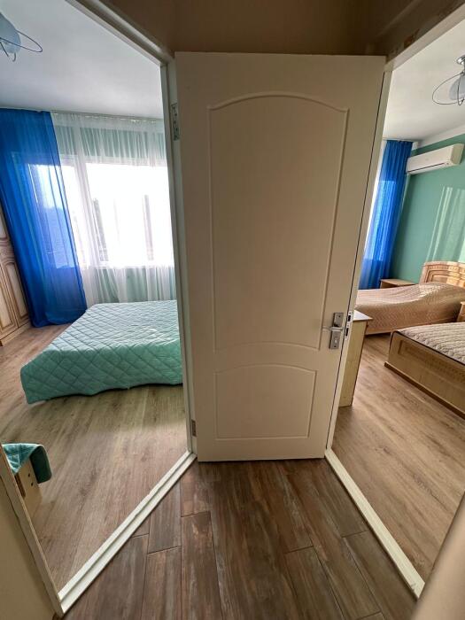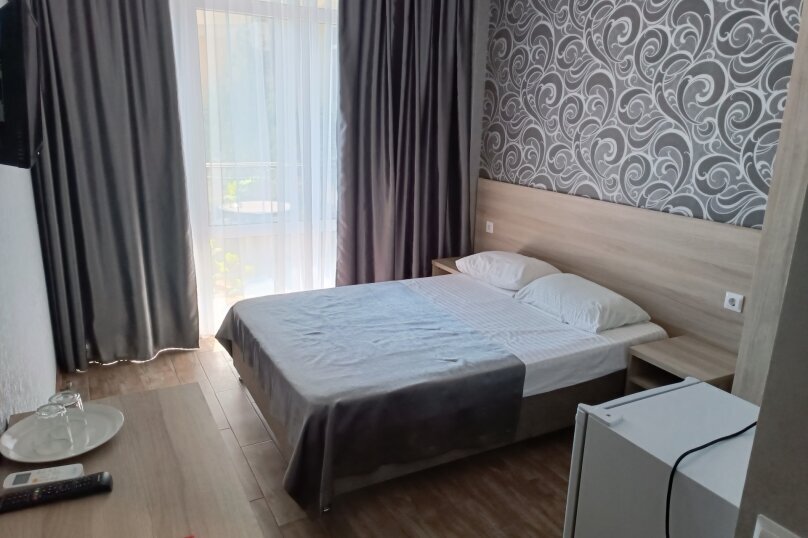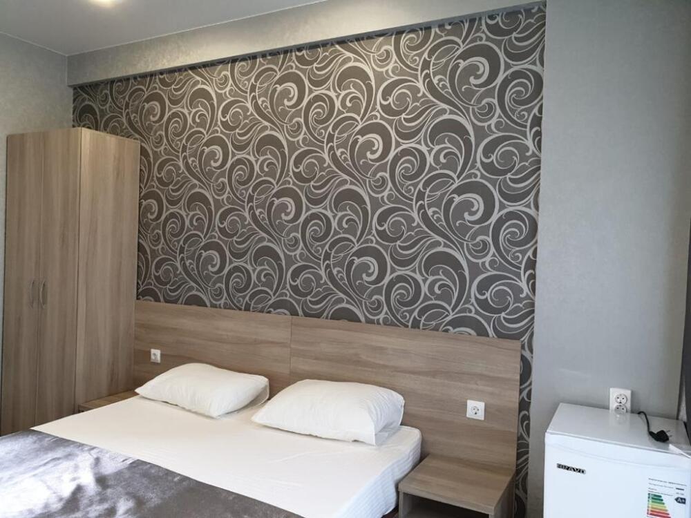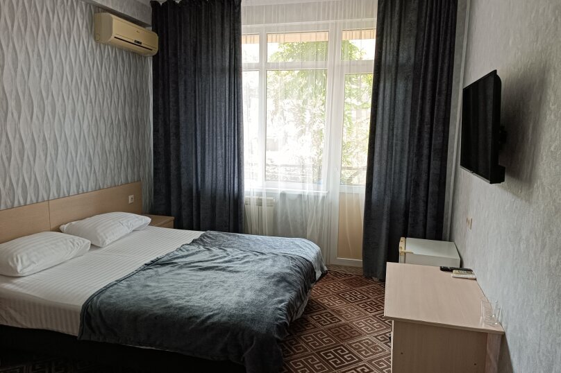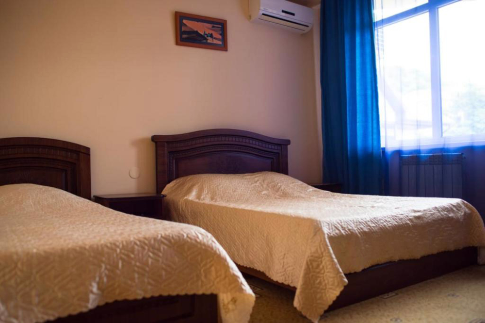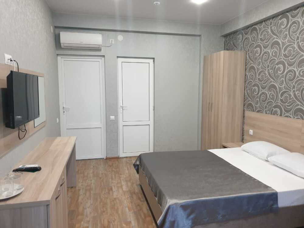 Двуспальная кровать или 2 односпальных.В номере душ и туалет,телевизор, холодильник ,кондиционер. Индивидуальный балкон с летней мебелью.