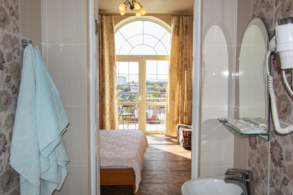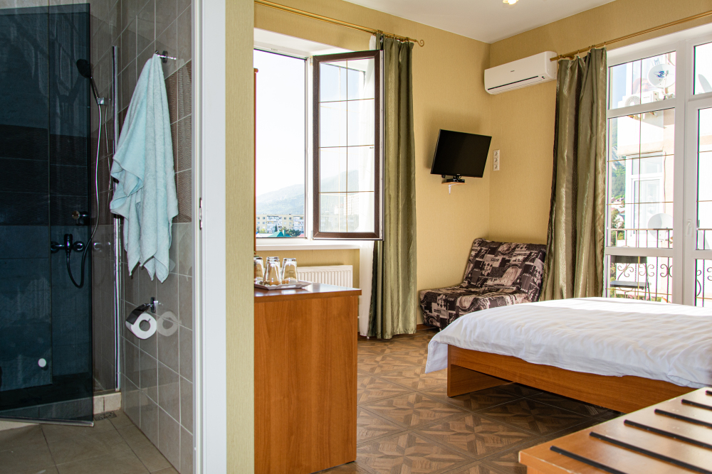В Вашем распоряжении целый этаж нашего бутика отеля. 2 спальни с балконами на 4 гостей и собственная душевая комната на этаже с ванной или душевой кабиной. В каждой комнате балкон с потрясающим видом на море или горы.