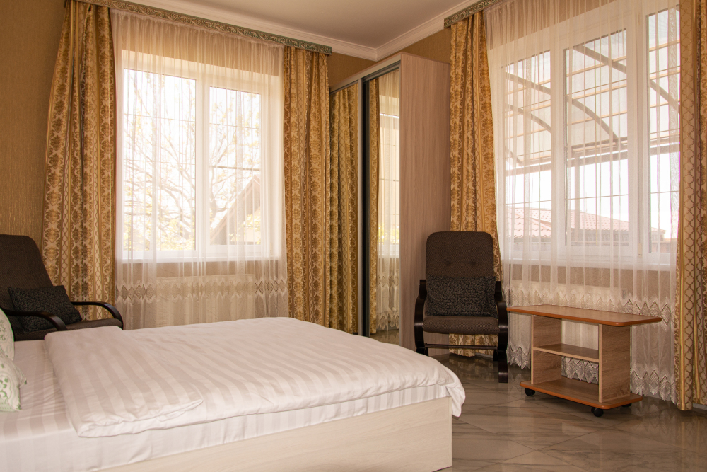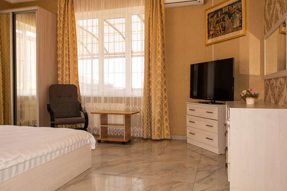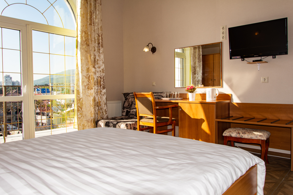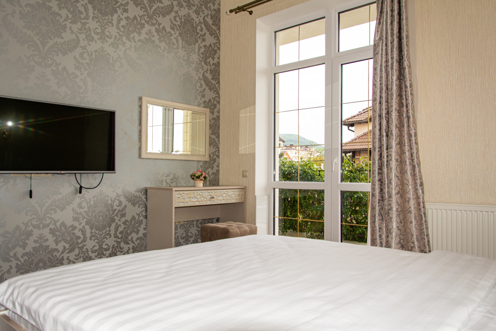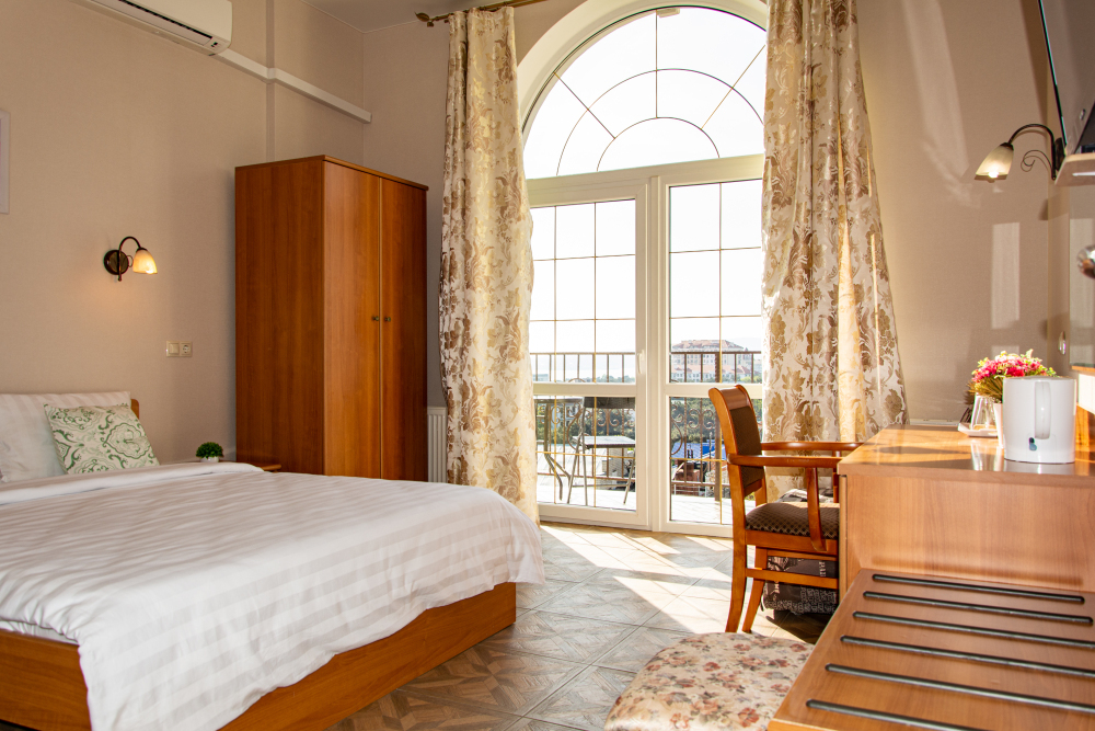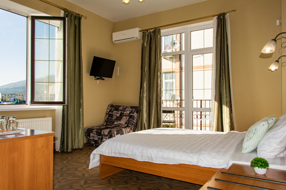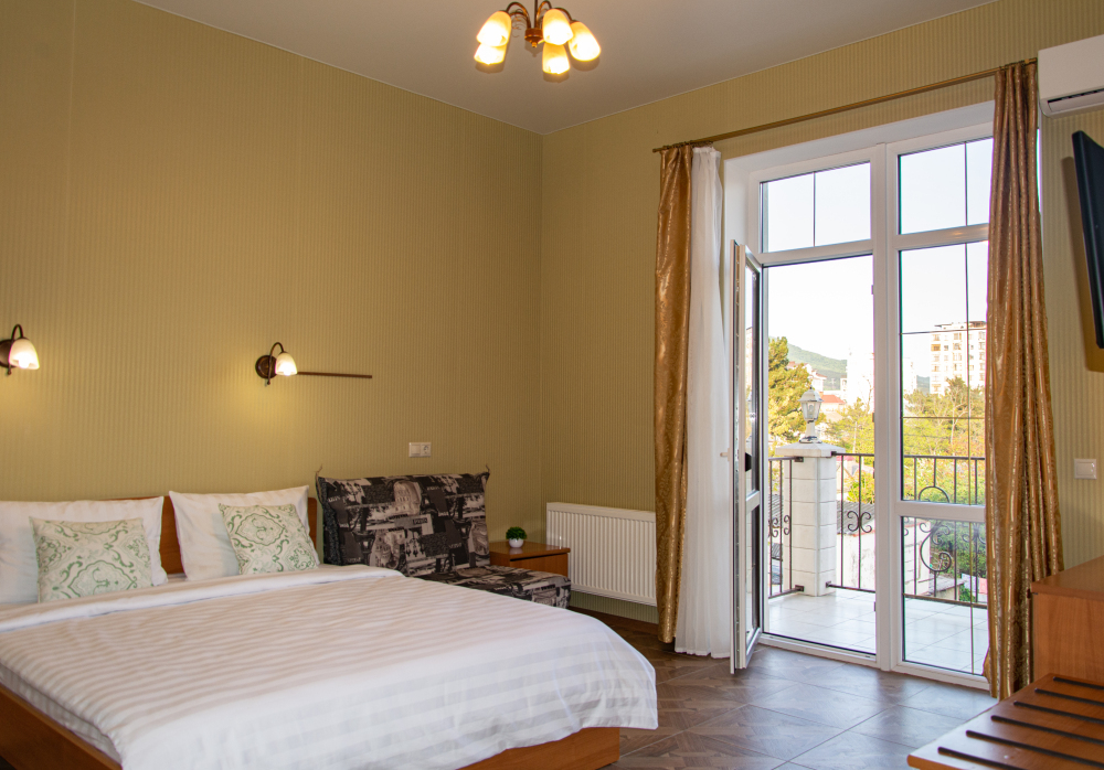 14 комфортабельных и уютных номеров для безупречного отдыха. В каждом номере Wi-Fi, TV, холодильник, сплит-система, мини-бар (доп. услуга), ванная комната, фен, косметические принадлежности, полотенца, пляжные полотенца Из наших номеров открывается потрясающий вид на море, горы и закаты. Наши номера свободные от курения, зона для курения находится на территории отеля.