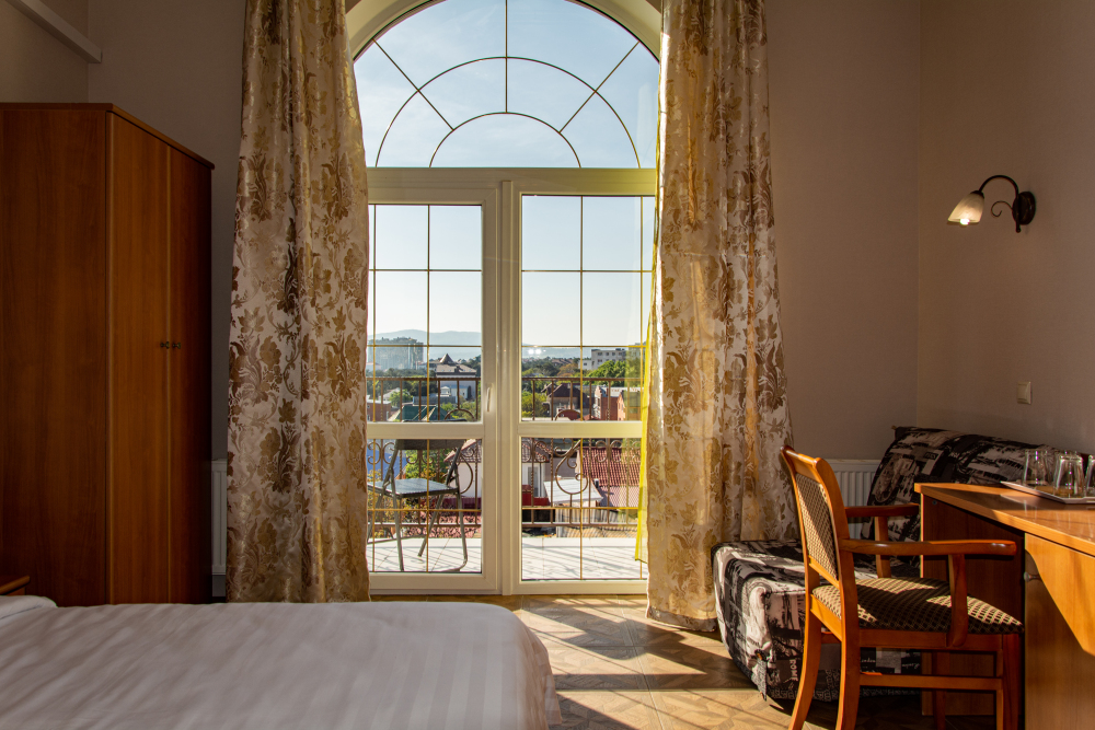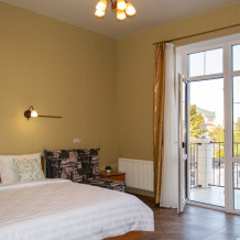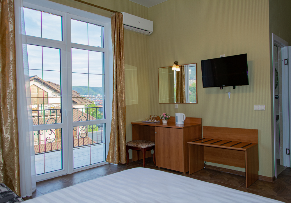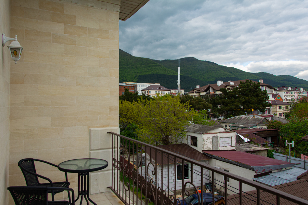 Супериор с балконом и потрясающим видом на горы для двоих гостей с возможностью размещения дополнительного места на кресле-диване.