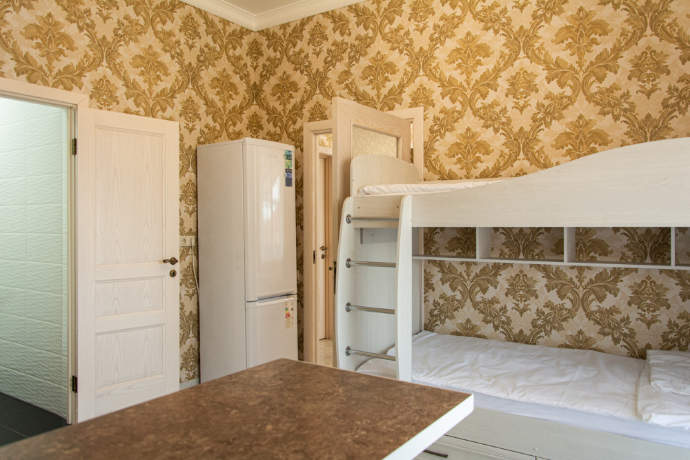 Уютный бунгало домик с отдельным входом, 2 комнатами и кухней идеально подойдет для семьи или компании друзей. На кухне все необходимое для приготовления еды: большой холодильник, плита, микроволновка и набор посуды.
