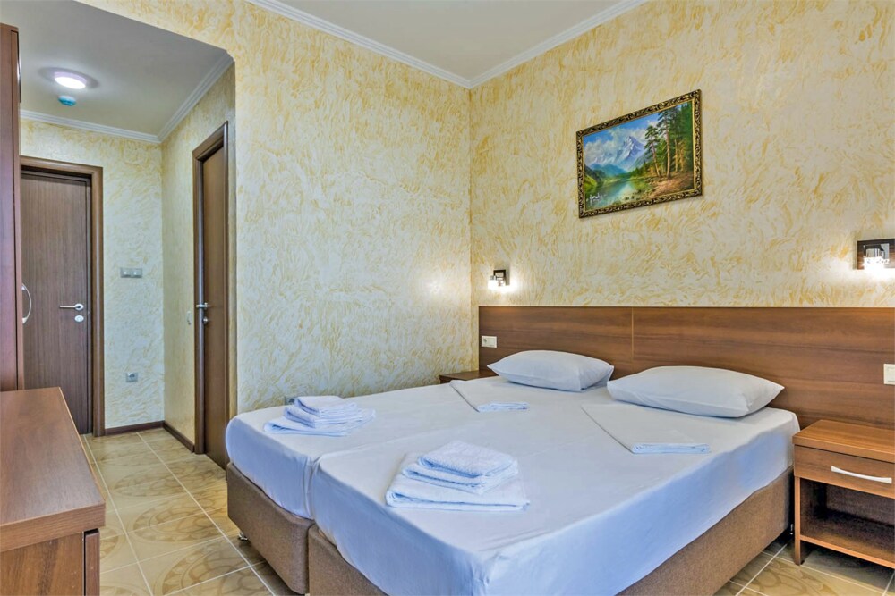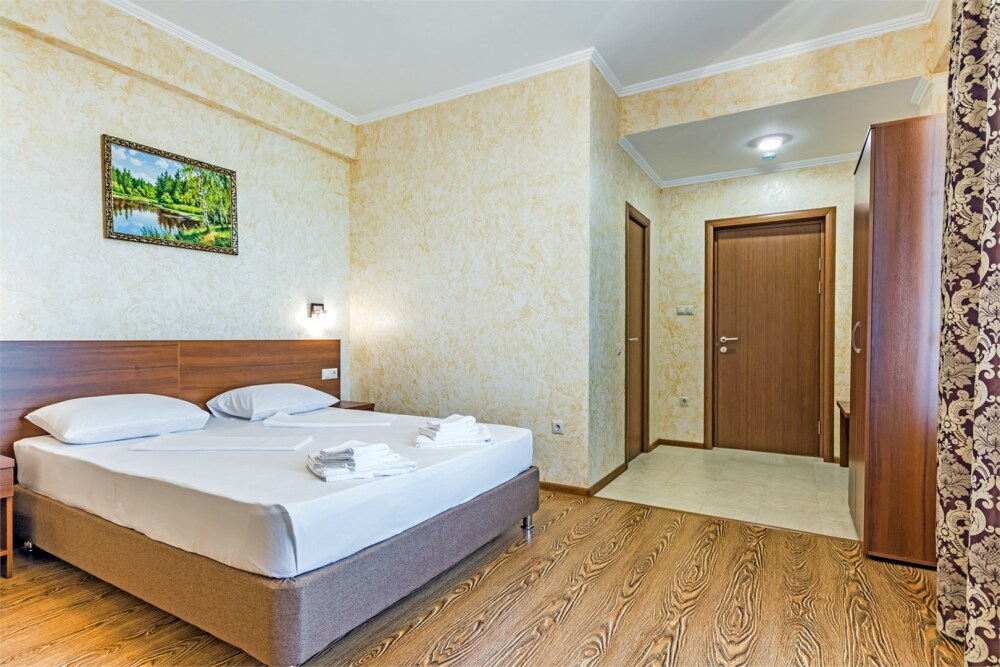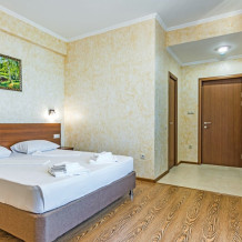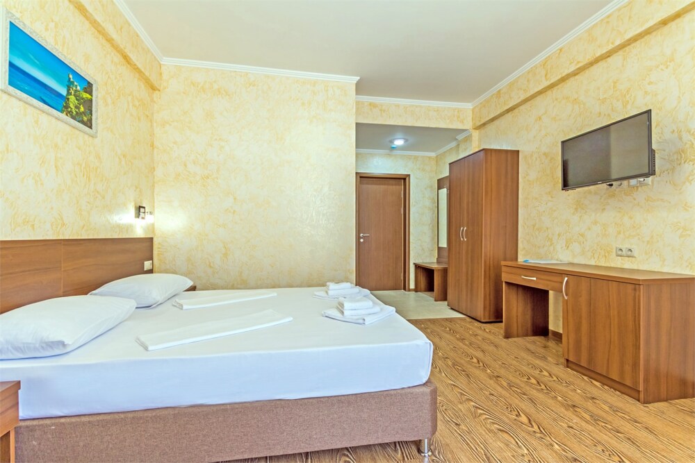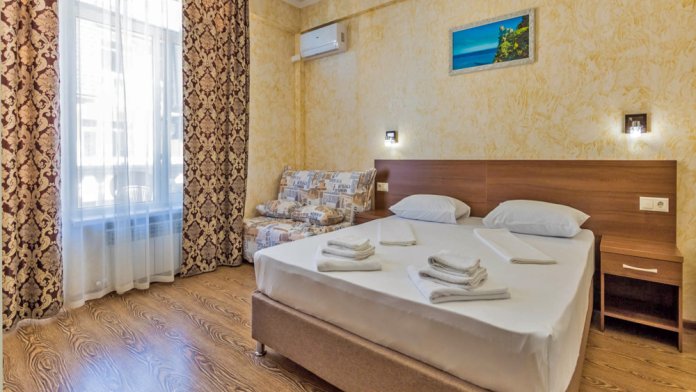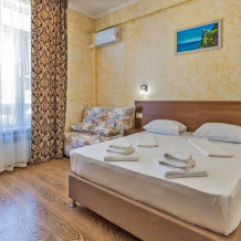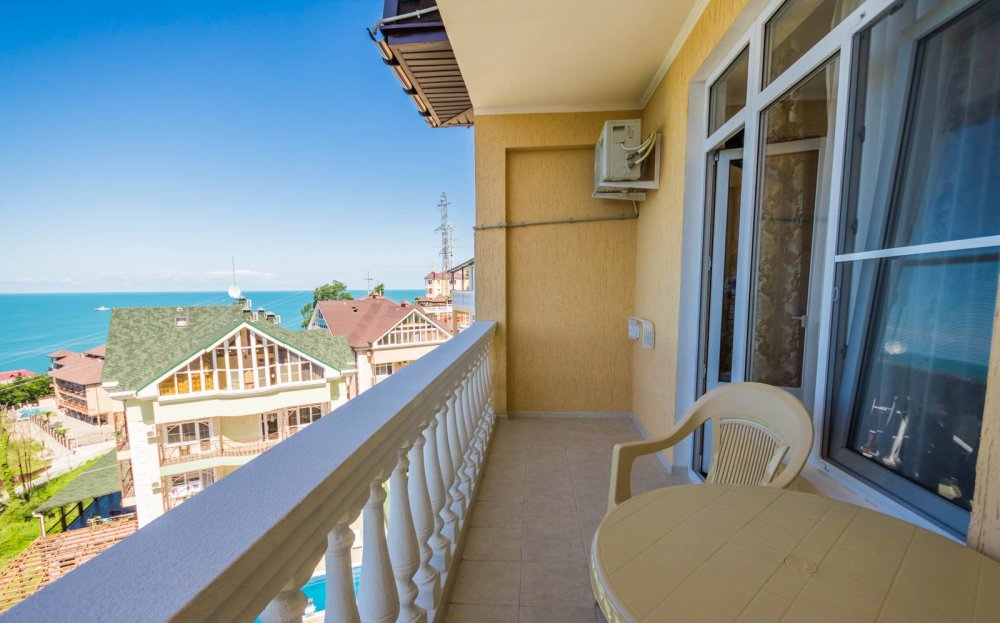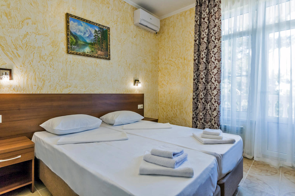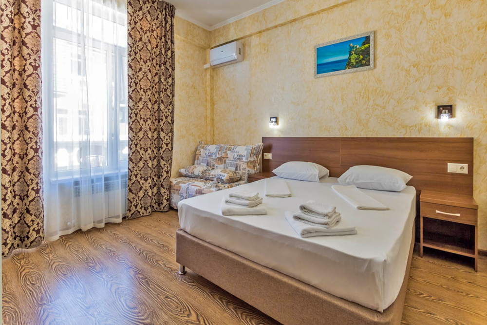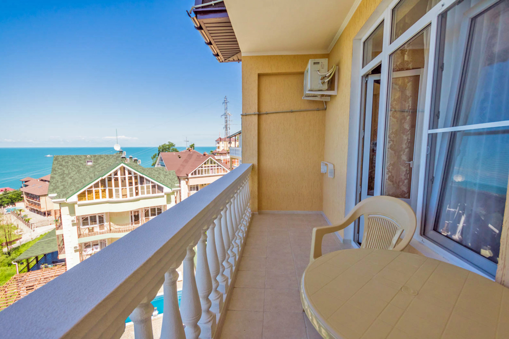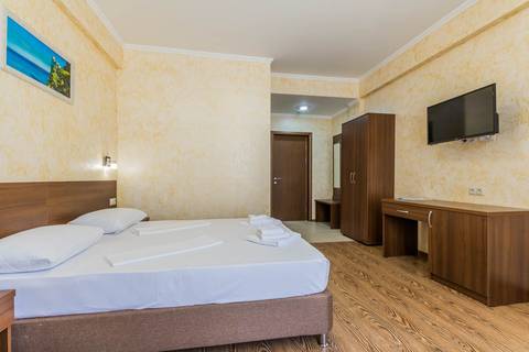 Комфортабельный, уютный семейный номер с балконом и прямым видом на море, площадью 20-22 кв.м. рассчитанный на проживание от 2-х до 4-х человек. Номер может быть, как с раздельными кроватями, так и с общей кроватью.Дополнительно можно арендовать детскую кроватку 400 рублей в сутки.