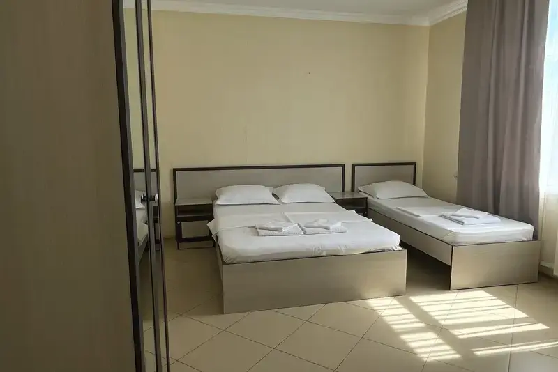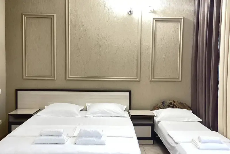 Уборка в номерах со сменой белья и полотенец - 1 раз в 5 дней.