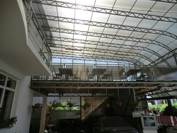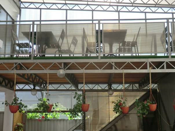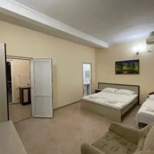 На территории дома имеется продуктовый магазин и общая оборудованная кухня. Во дворе - место для отдыха и мангальная зона.