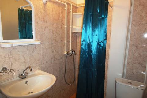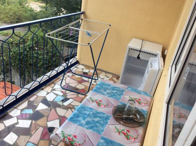 До пляжа прогулочным шагом не более 7 минут. По пути много кафе и столовых. Пляж чистый и галечный. Так же на берегу много акваразвлечений: горка, скутеры, катамараны и т. п.