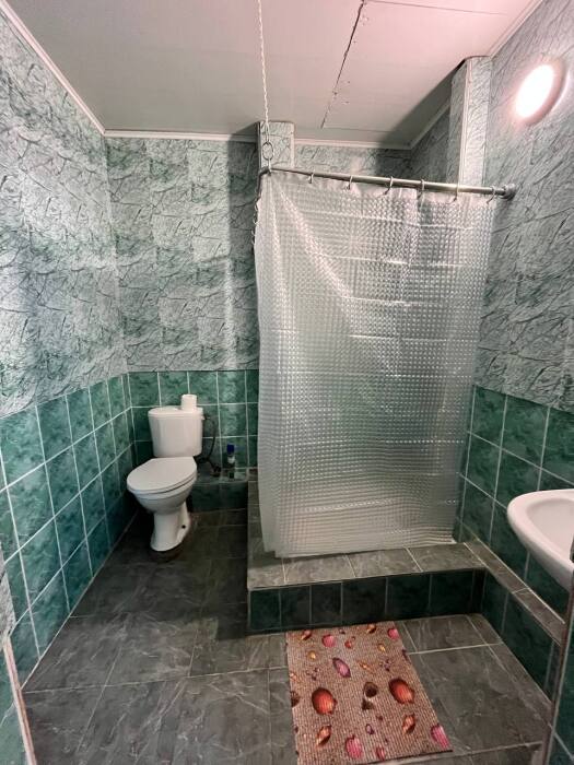 Ванна и санузел на этаже укомплектован туалетной бумагой и жидким мылом.