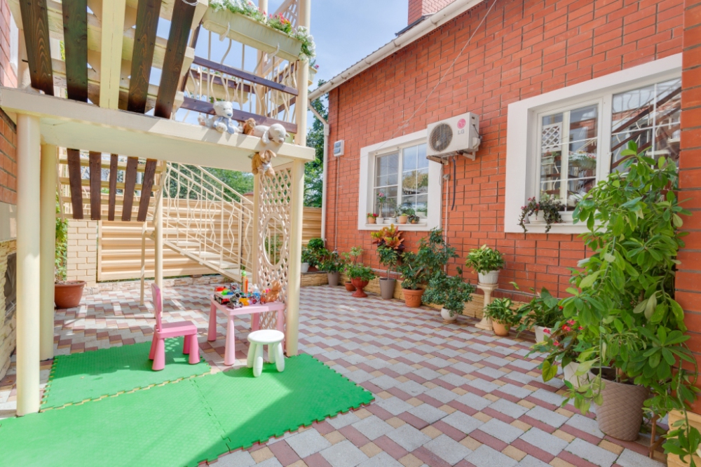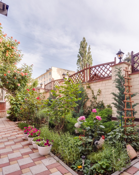 Во внутреннем дворике можно позагорать, приготовить шашлык или барбекю.