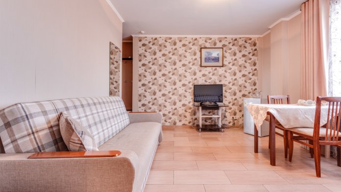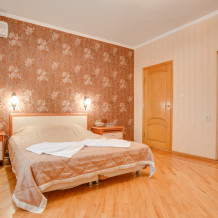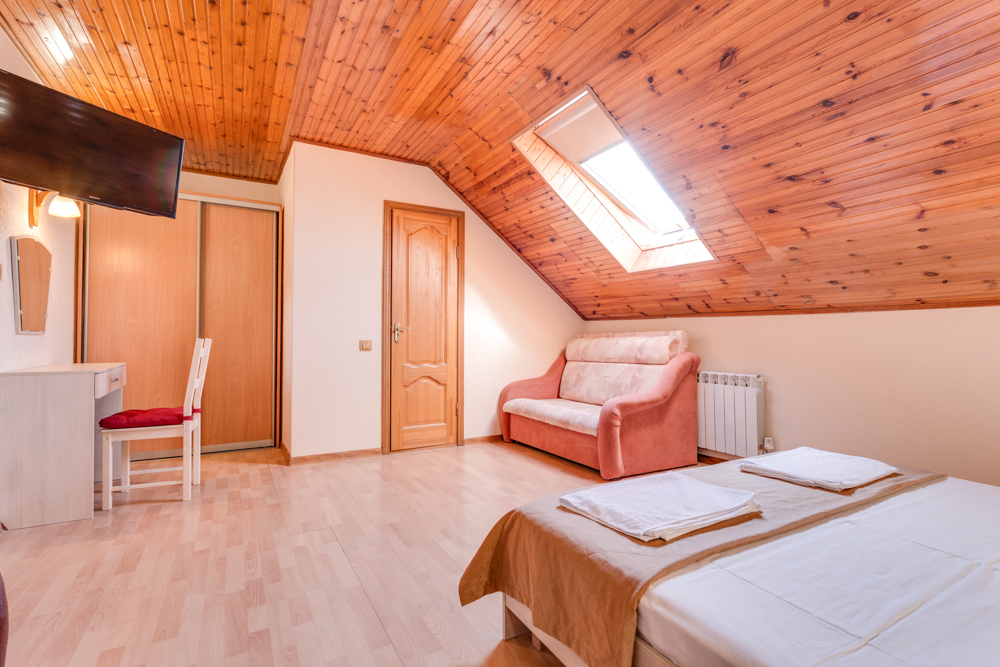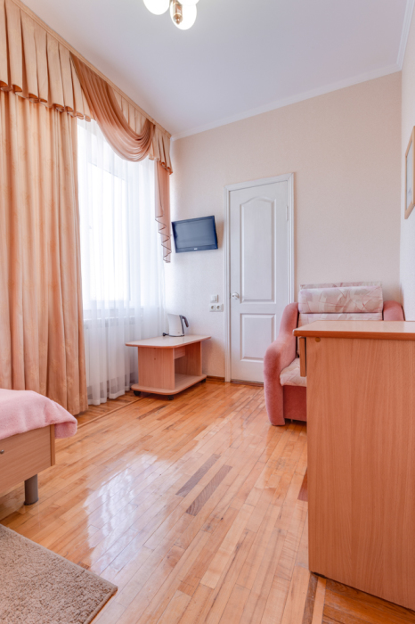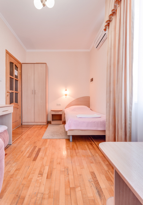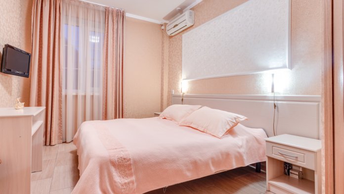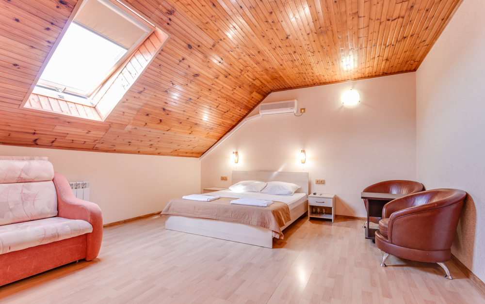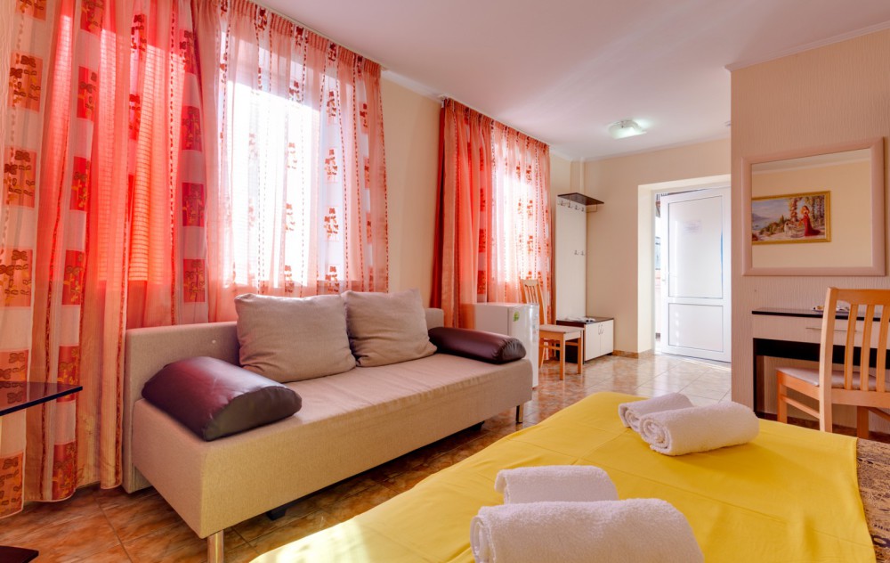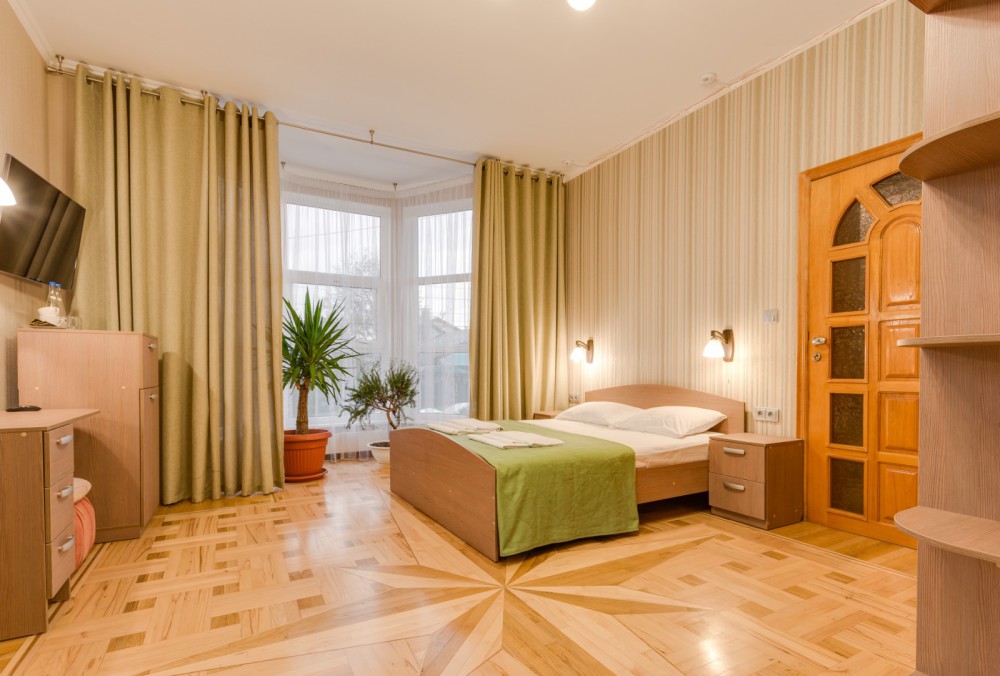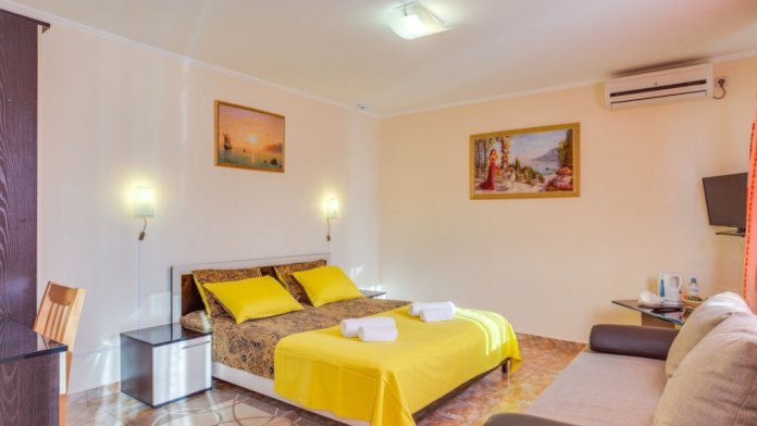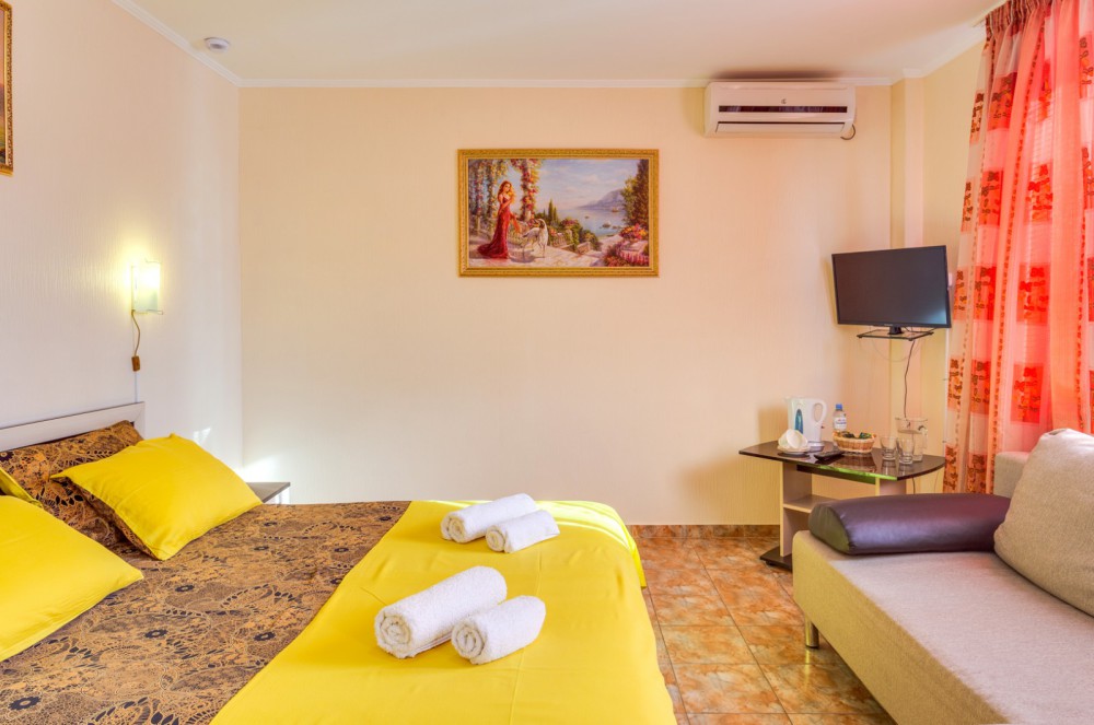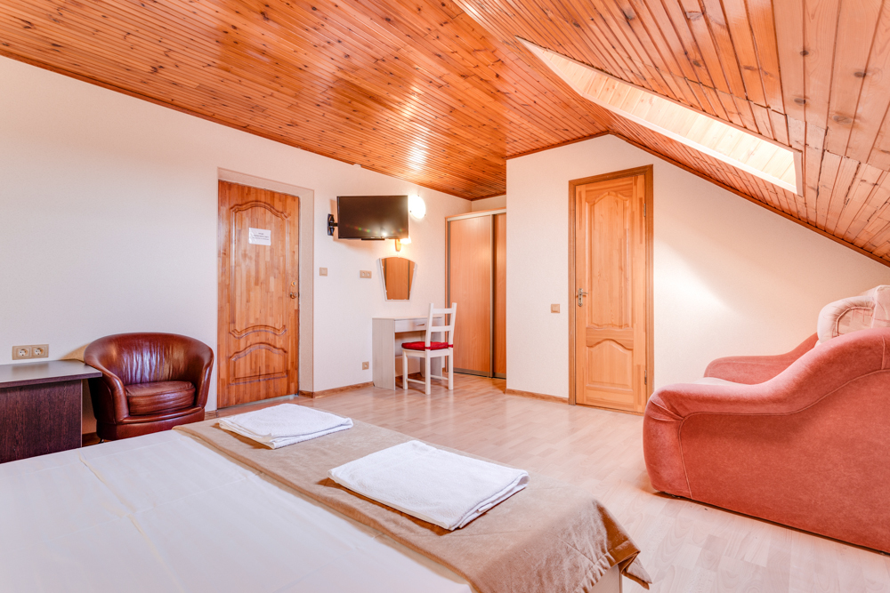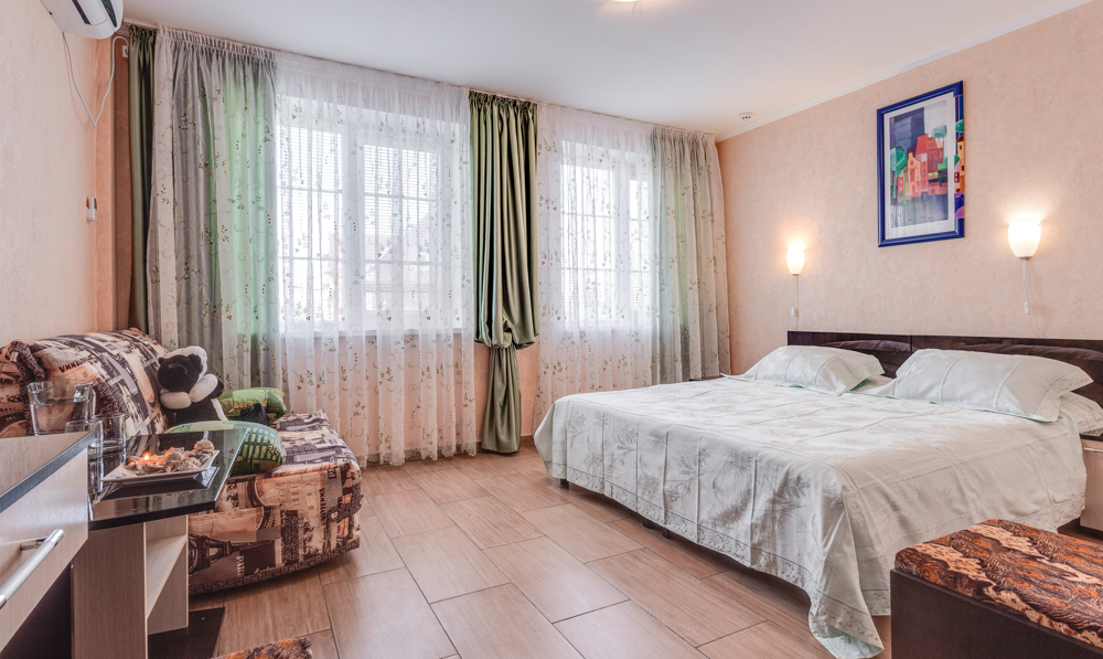 В номере двухспальная или 2-односпальные кровати, прикроватные тумбочки, шкаф, туалетный столик, цифровое тв, холодильник, чайник, сейф, кондиционер, все удобства в номере. Размещение 2-4 человек.