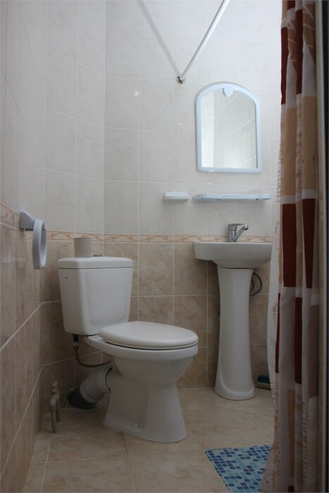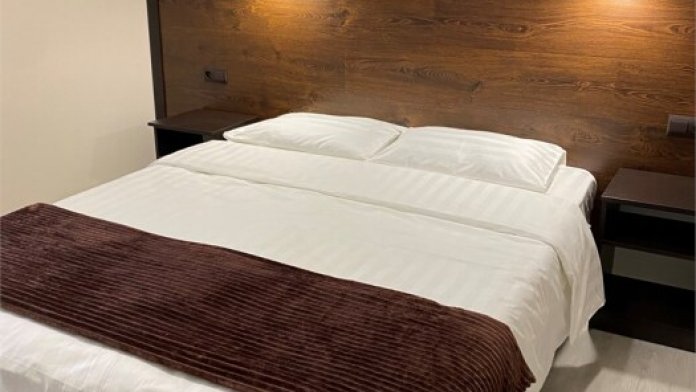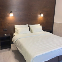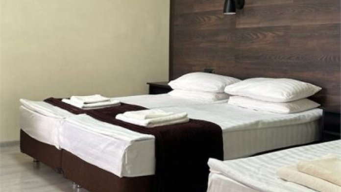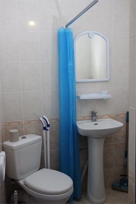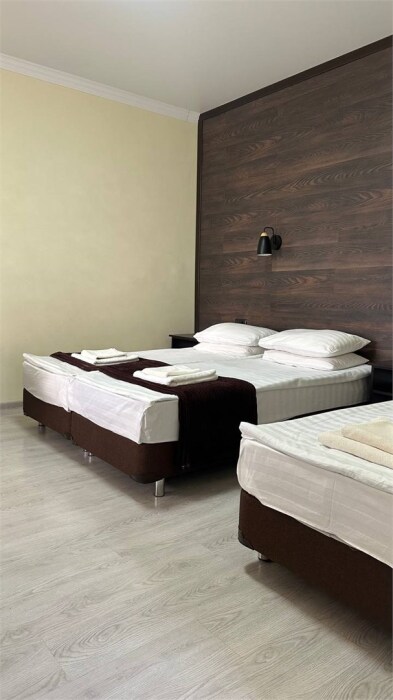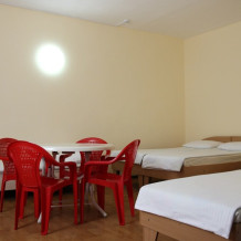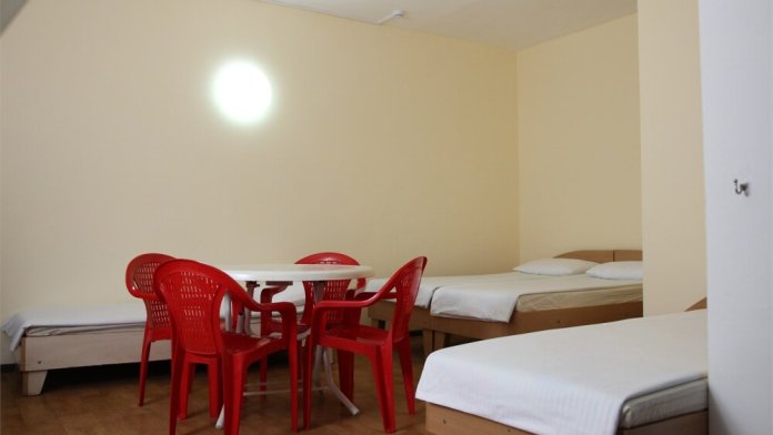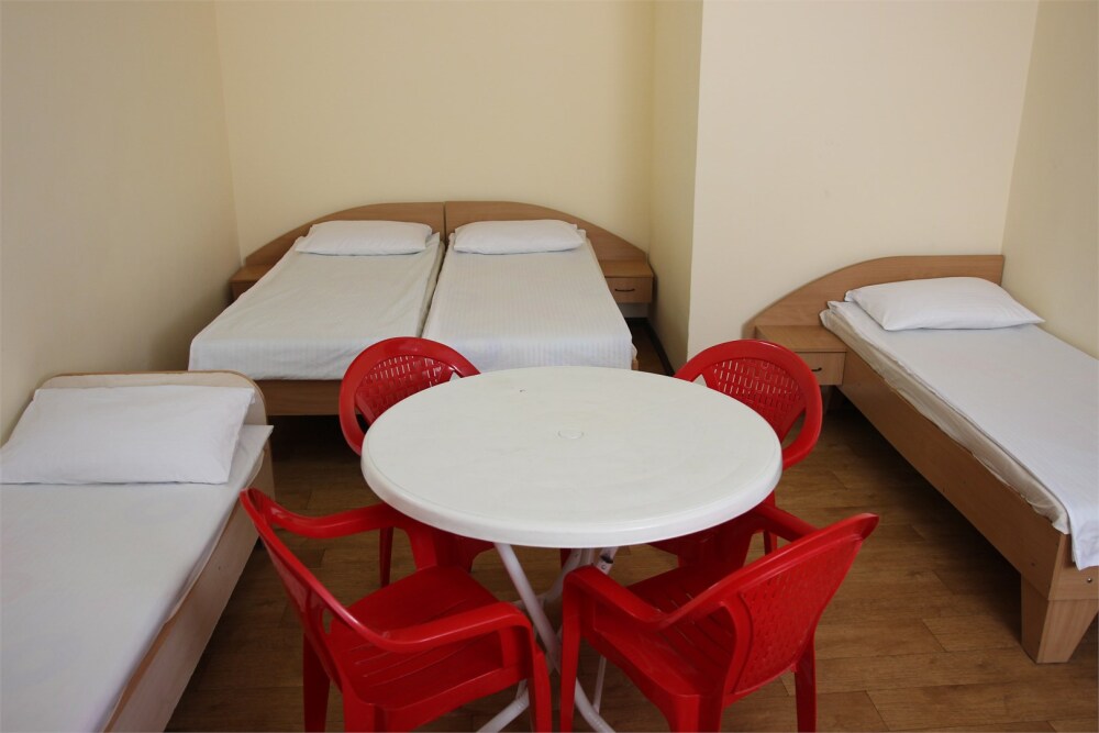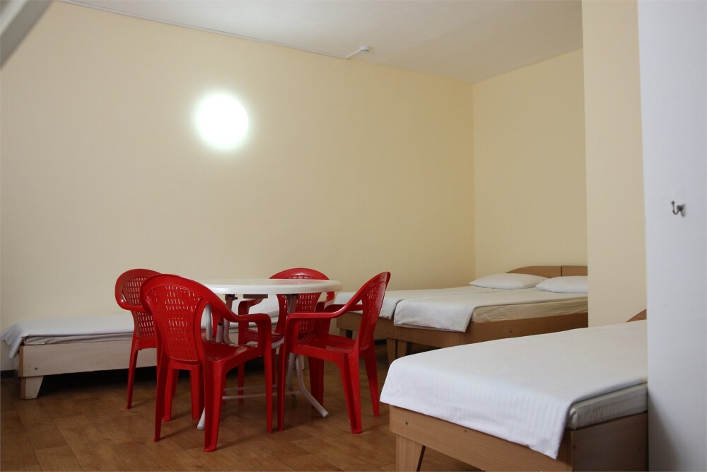 Номера находятся на 3 этаже. Вход в номер осуществляется с проходного балкона (у каждого гостя есть своя часть балкона для отдыха). В номере: телевизор, холодильник, кондиционер, шкаф, стол, стулья, чайник, санузел, горячая/холодная вода круглосуточно, душ. Смена полотенец и первая уборка номера происходят на 3-й день проживания. Смена постельного белья, полотенец и уборка происходят на 6-й день проживания. Отопление: кондиционер и электробатарея. На кроватях ортопедические матрасы. Возможна трансформация двуспальной кровати в две односпальные.