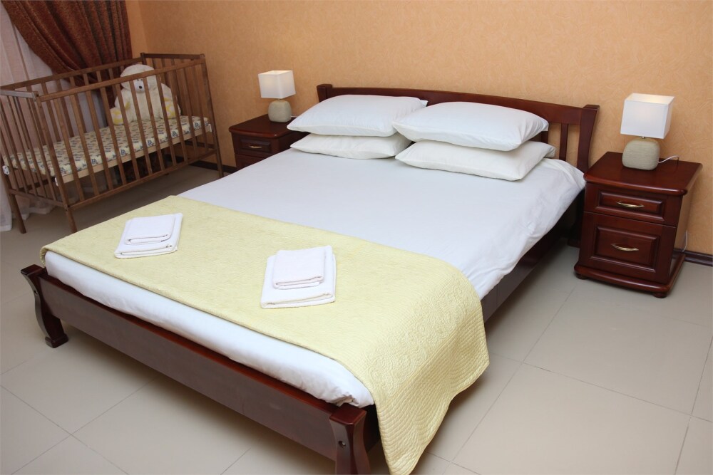 1 двухспальная кровать, 1 диван-кровать, детская кроватка