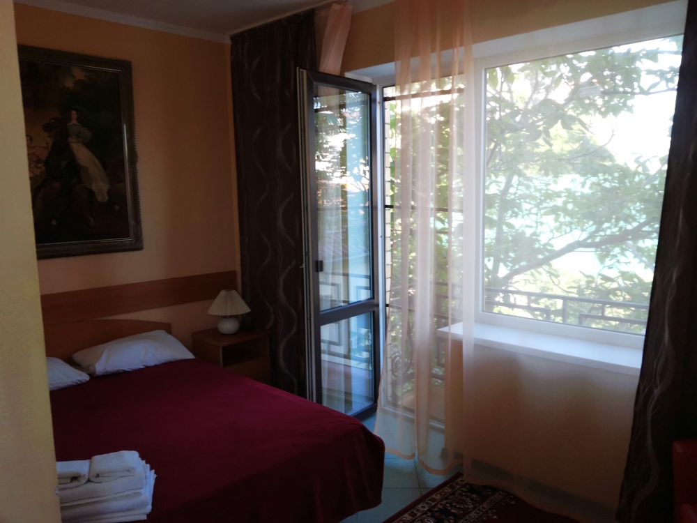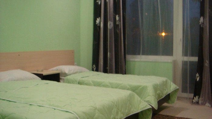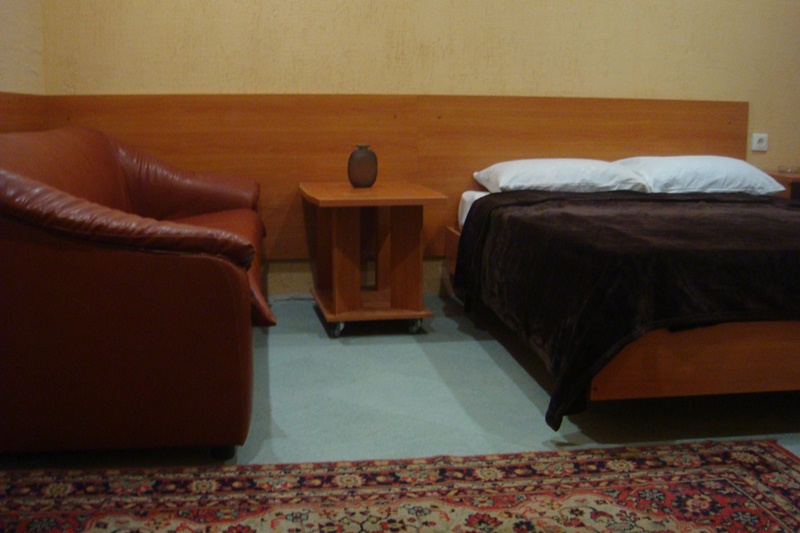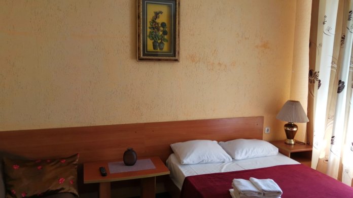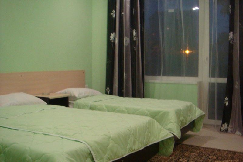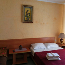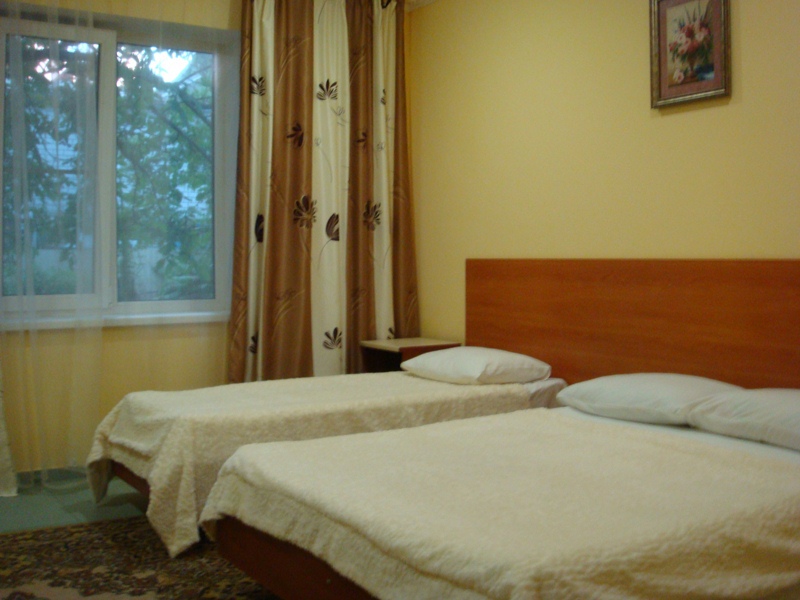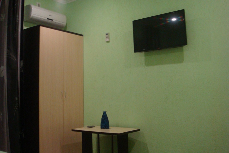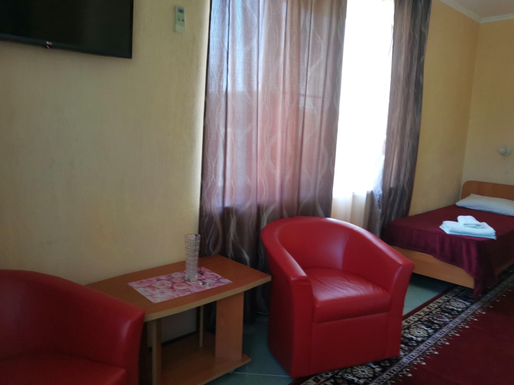 В номере:одна 1 сп. кровать и одна 2х сп, шкаф, прикроватные тумбочки, журнальный столик, кондиционер, телевизор-плазма, холодильник, два кресла, Эл. чайник и набор посуды, с/узел +душ, фен, полотенце.