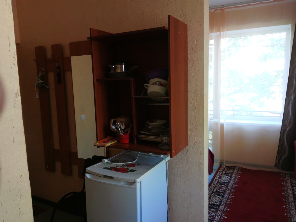 - сплит-система, телевизор, спутниковое ТВ, интернет, холодильник, фен, электрочайник, посуда, общая терраса.