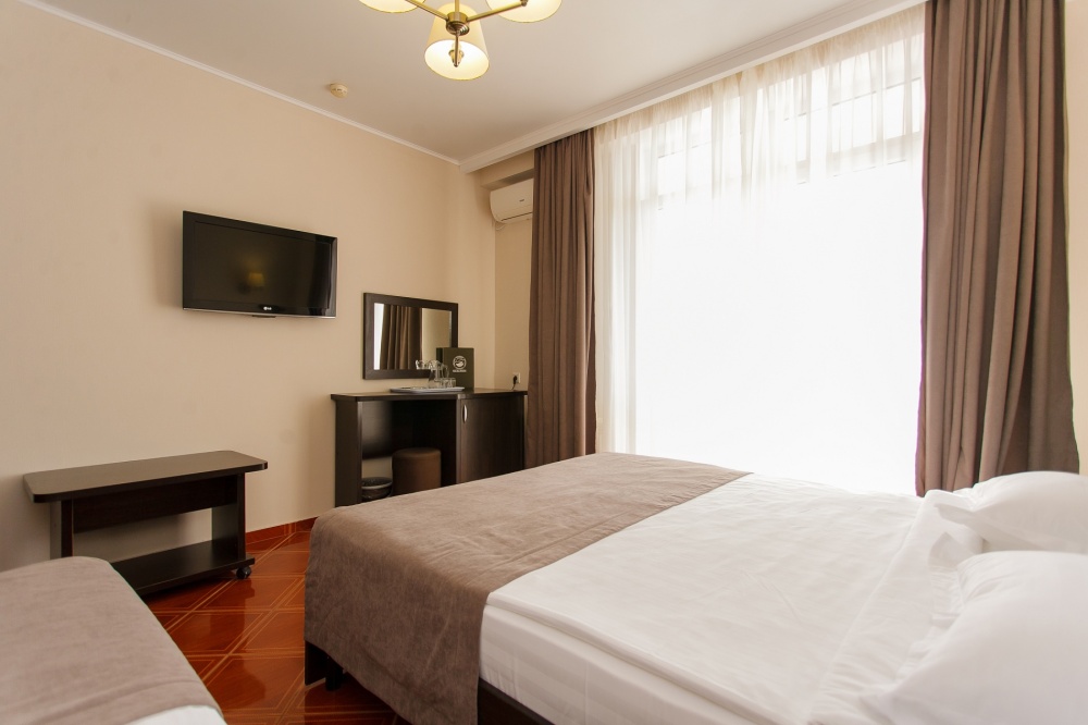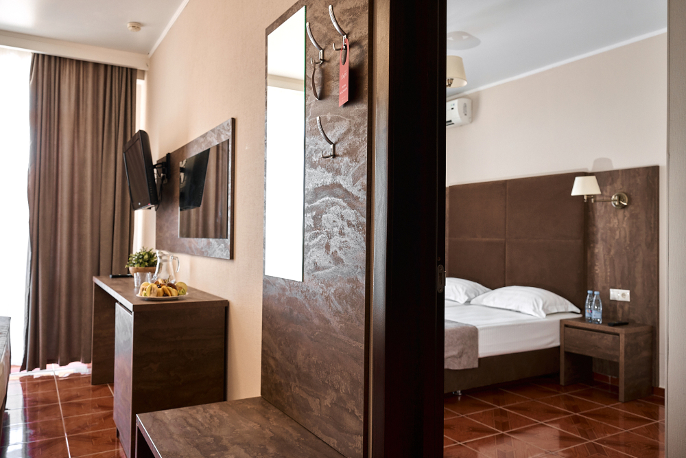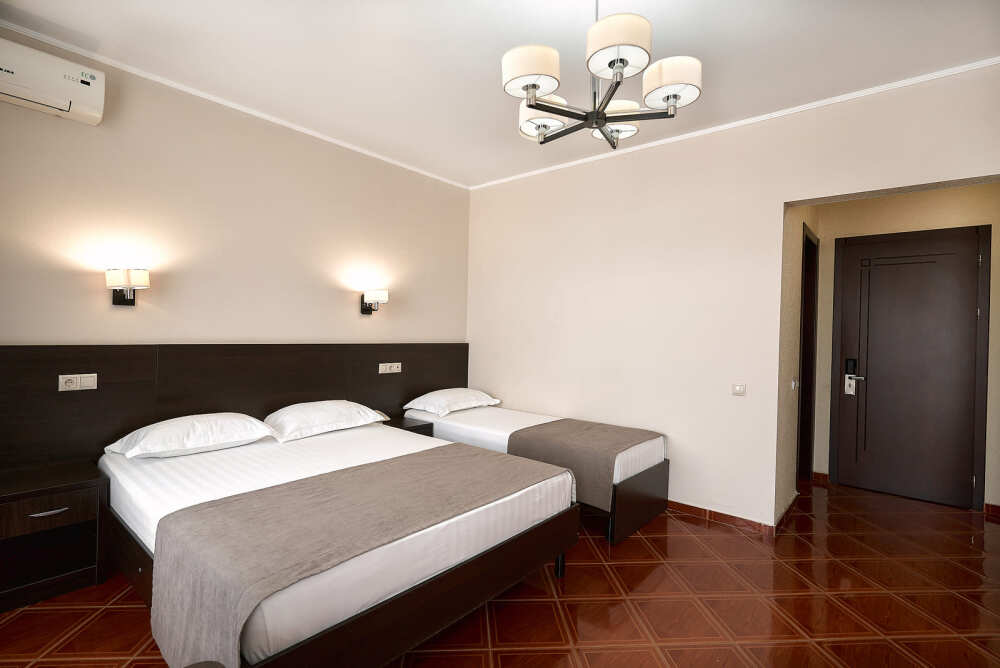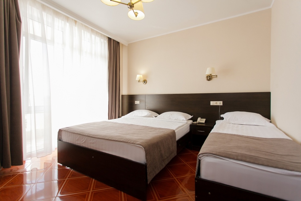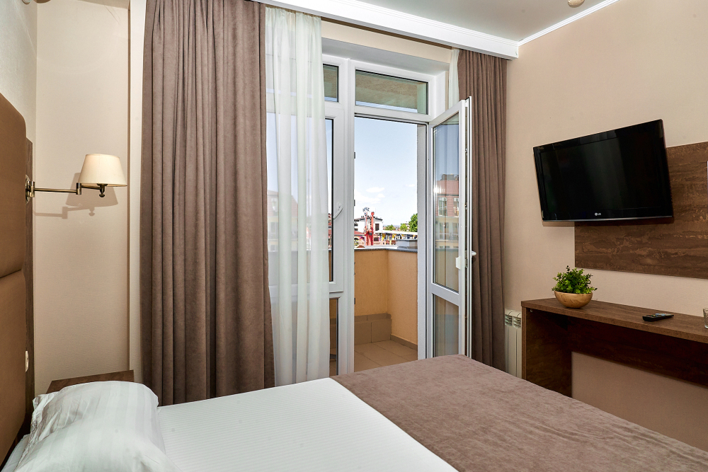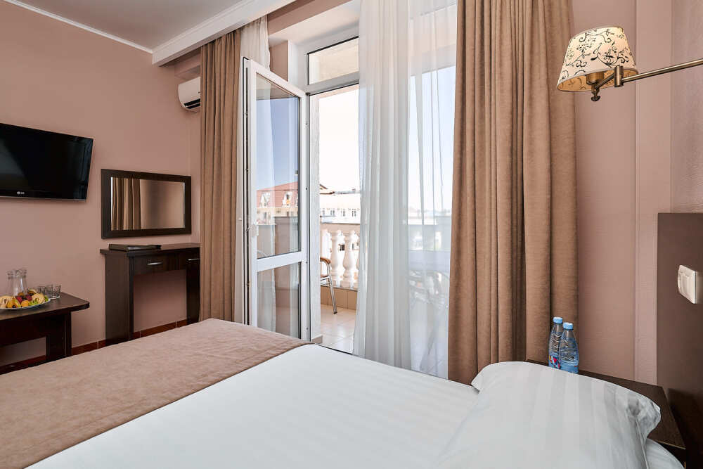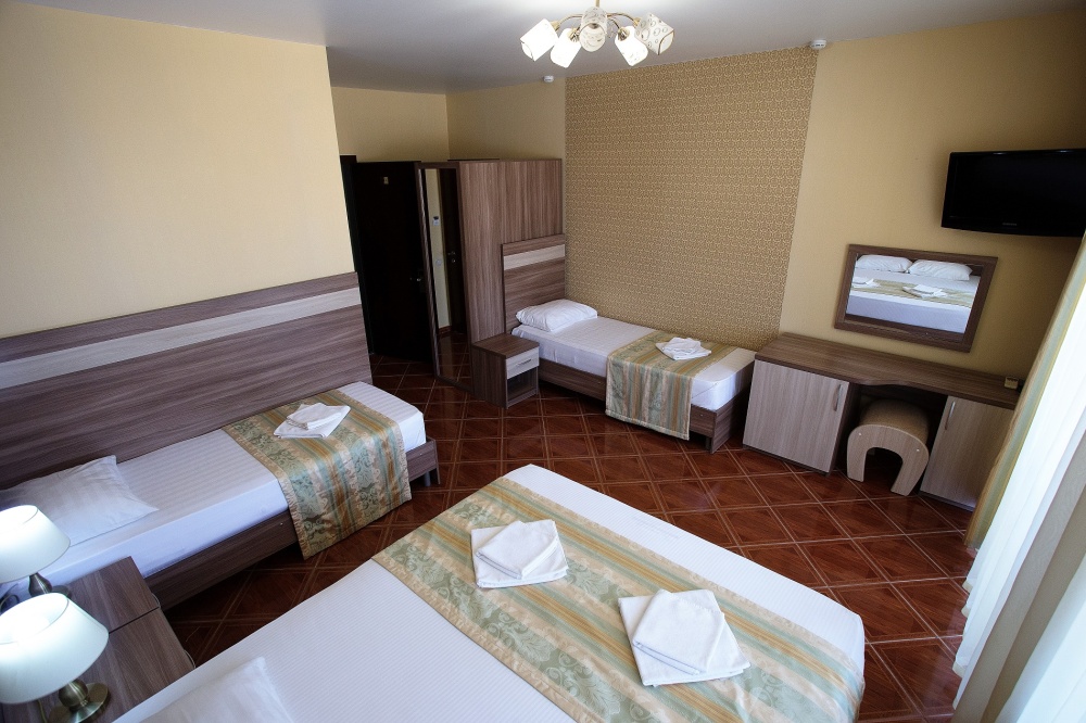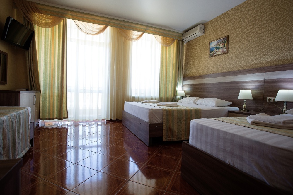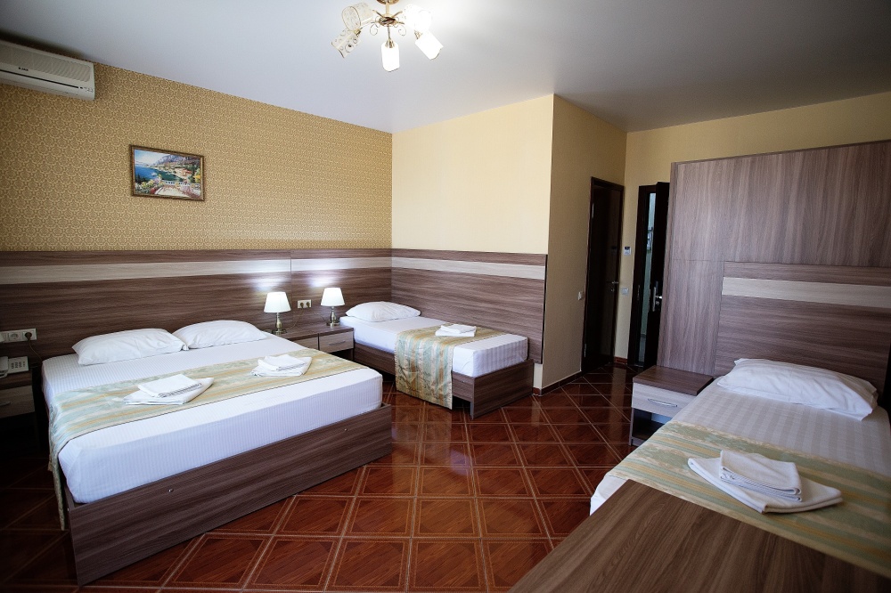 Номерной фонд отеля составляет 87 уютных номеров различных категорий, оснащенных всем необходимым. Весь день гости отеля имеют возможность отдыхать на собственном пляже (1700 метров от отеля), купаясь в лучах жгучего солнца и волнах ласкового Черного моря, а в отеле их ждет кафе с разнообразным и вкусным питанием, развлечения на любой вкус и отдых на белоснежной постели. Наш персонал всегда готов помочь в любой ситуации и сделать отдых максимально незабываемым. Мы всегда рады, когда наши гости возвращаются к нам вновь и вновь.