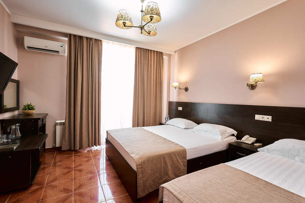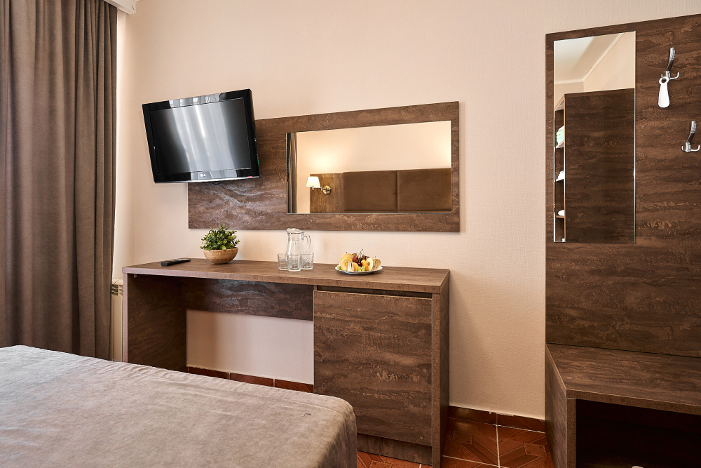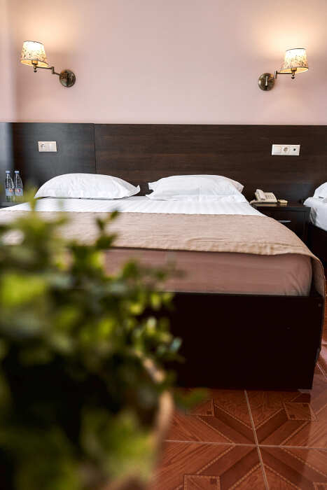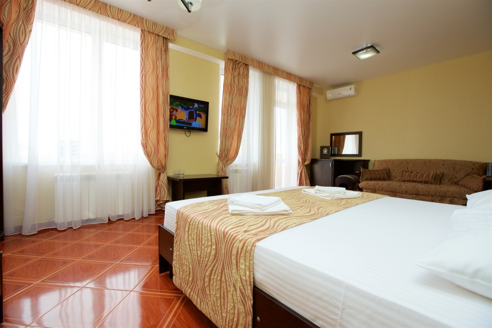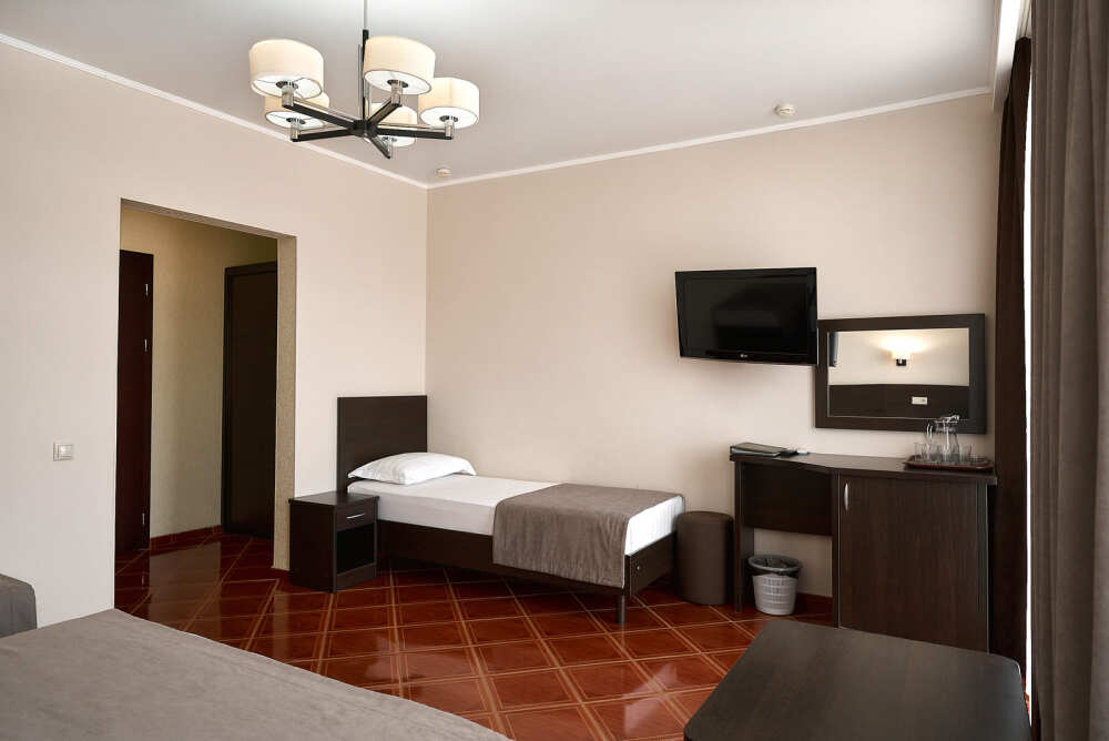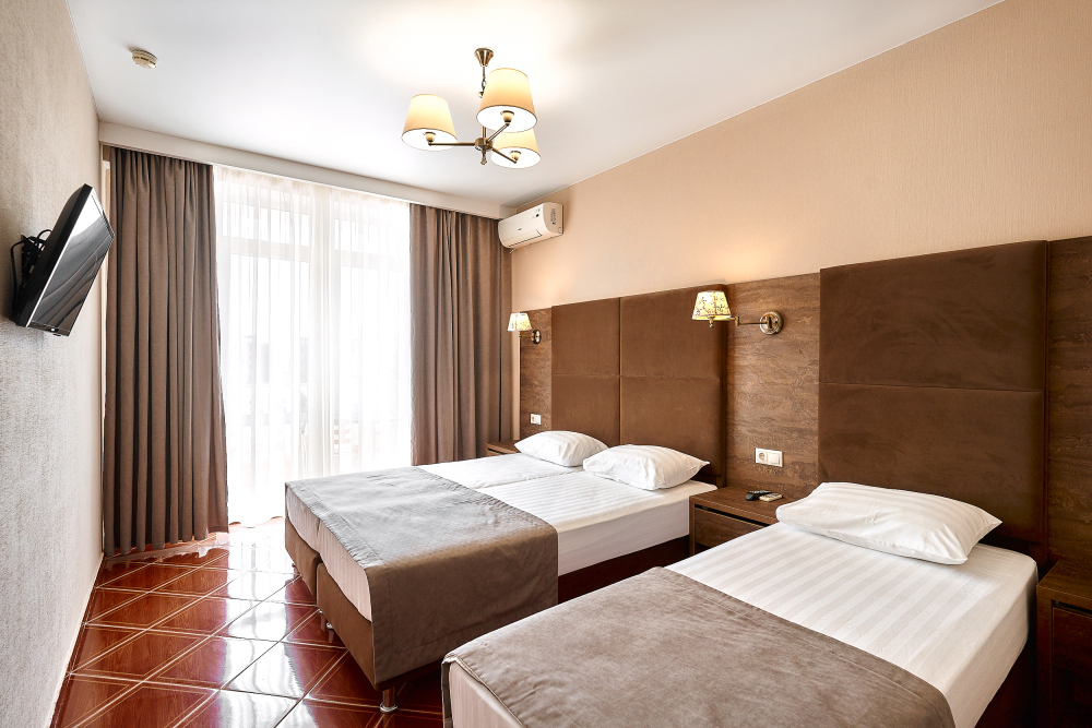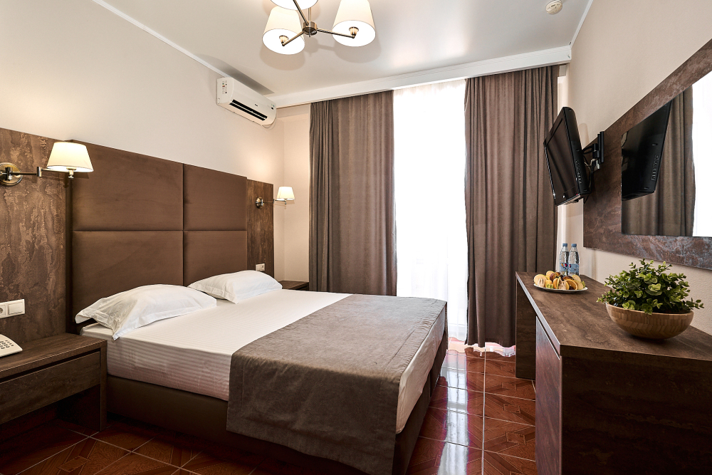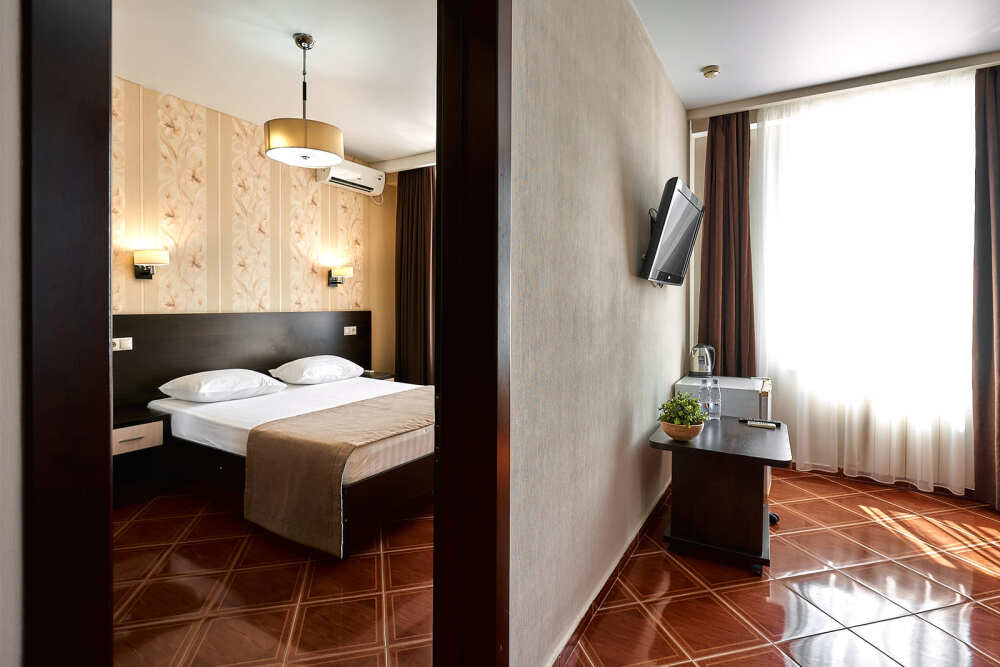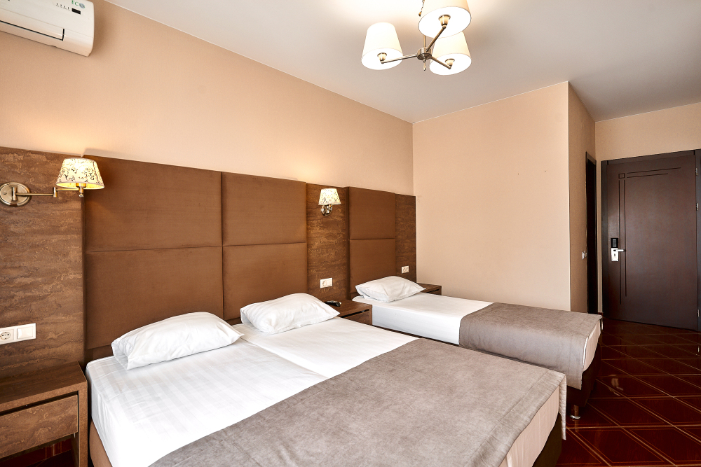 Номерной фонд отеля составляет 87 уютных номеров различных категорий, оснащенных всем необходимым. Весь день гости отеля имеют возможность отдыхать на собственном пляже (1700 метров от отеля), купаясь в лучах жгучего солнца и волнах ласкового Черного моря, а в отеле их ждет кафе с разнообразным и вкусным питанием, развлечения на любой вкус и отдых на белоснежной постели. Наш персонал всегда готов помочь в любой ситуации и сделать отдых максимально незабываемым. Мы всегда рады, когда наши гости возвращаются к нам вновь и вновь.