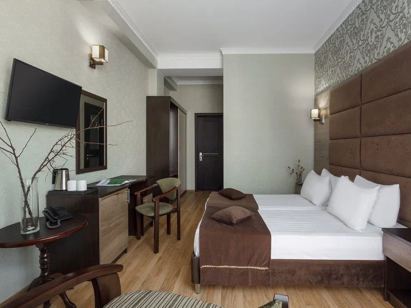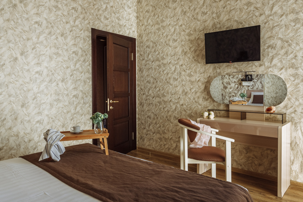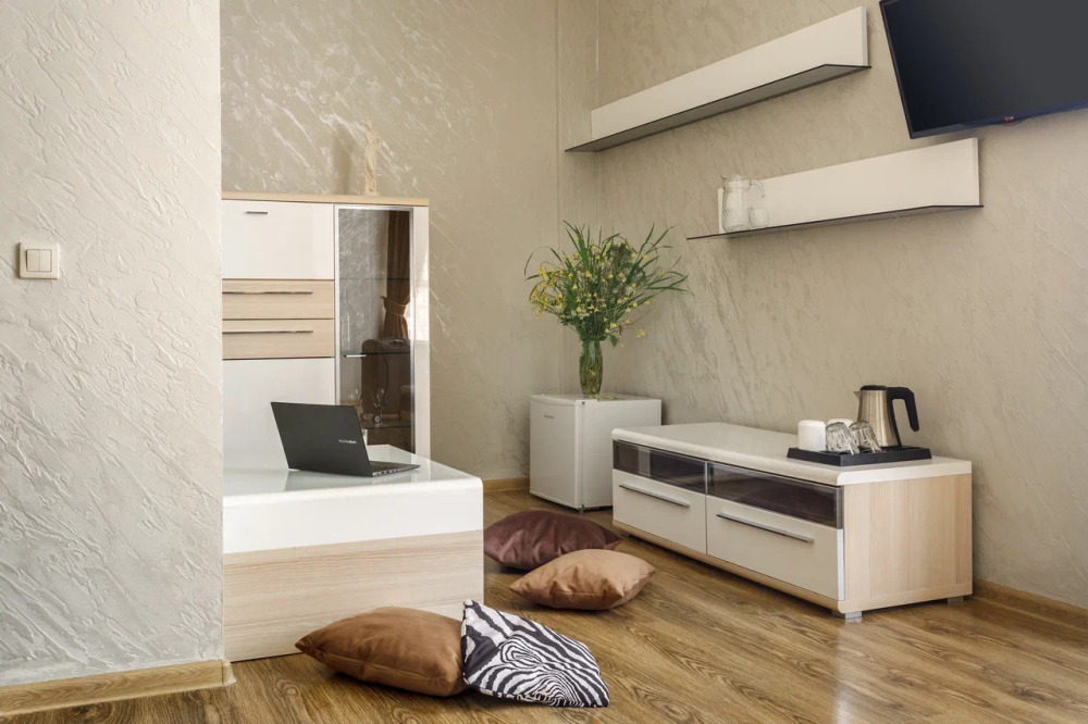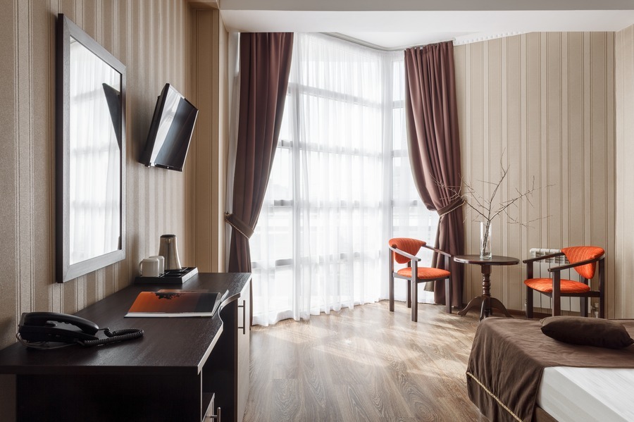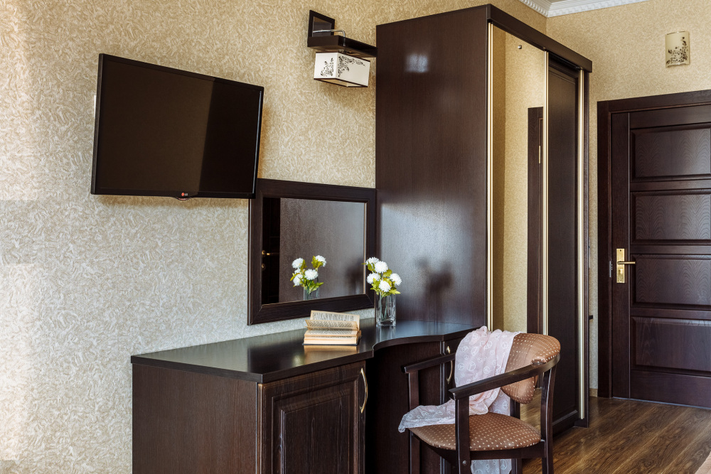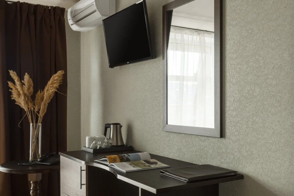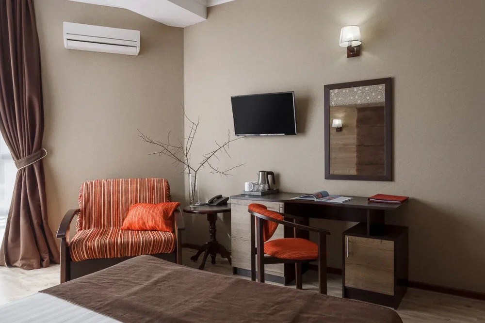 Необходимая современная мебель: сейф, мини-холодильник, телевизор, сплит-система,