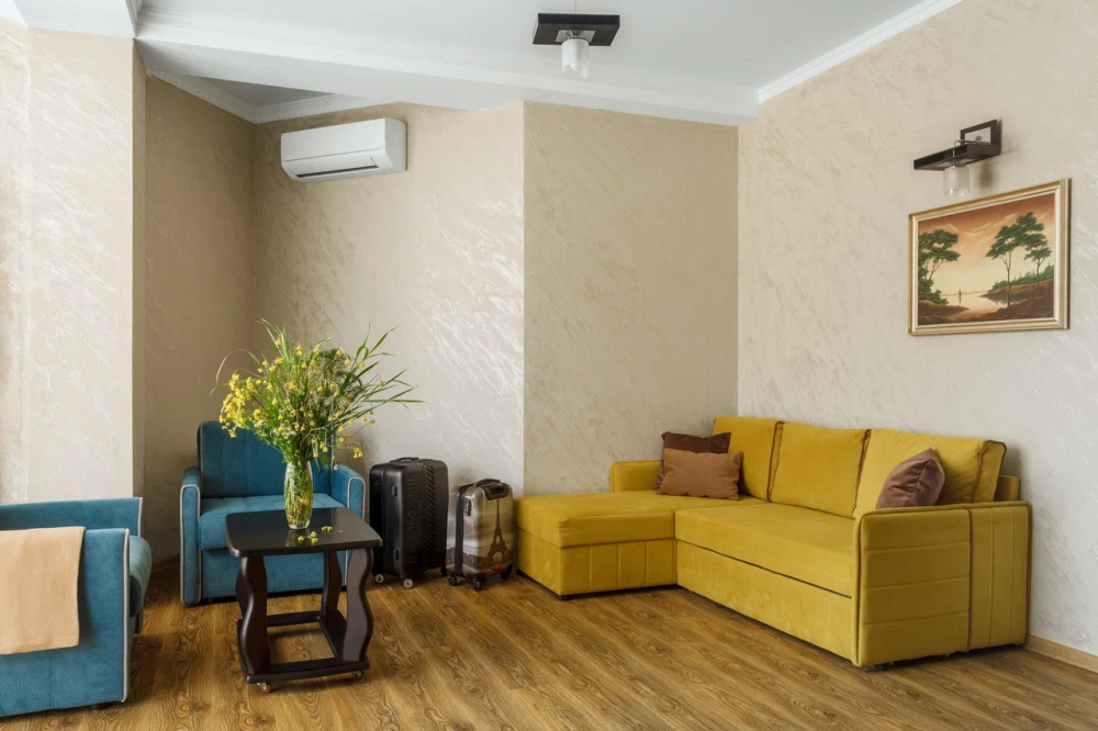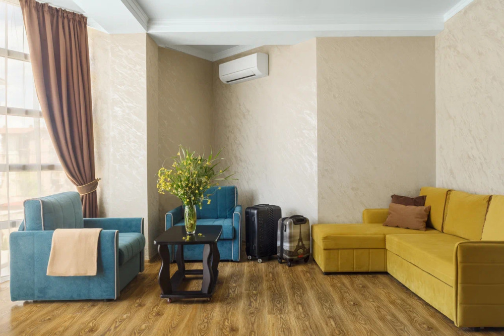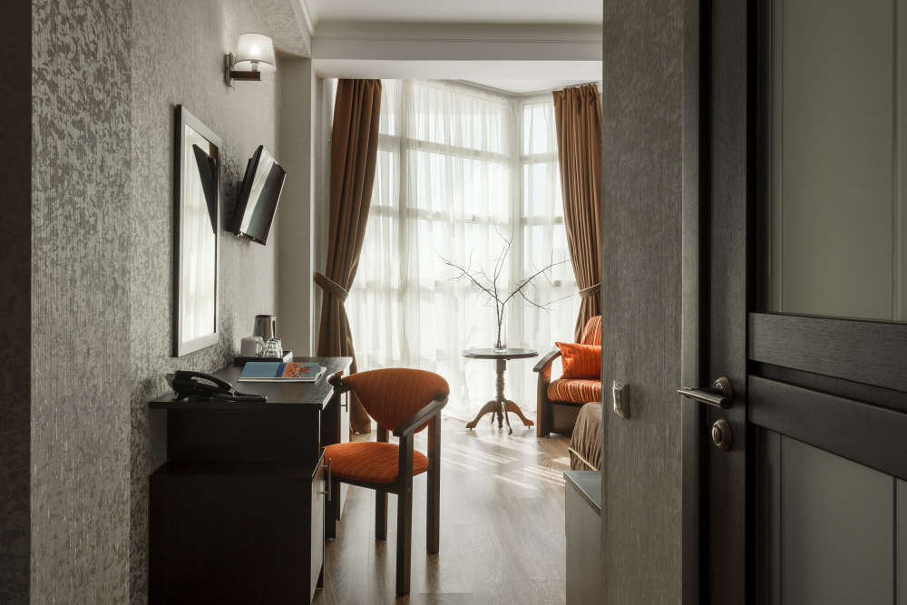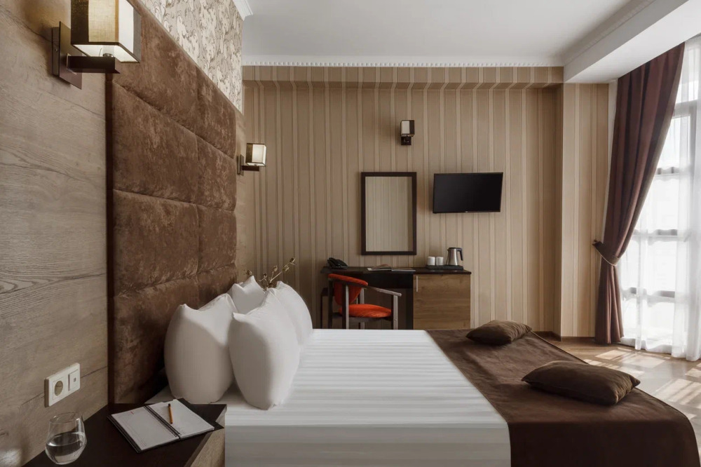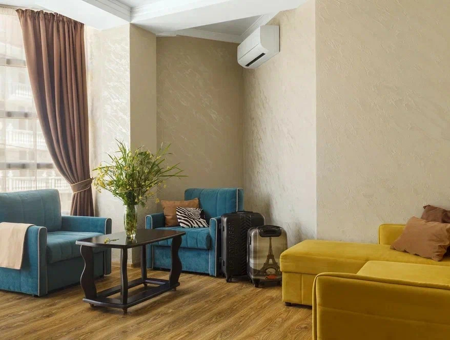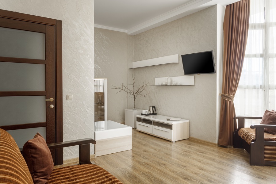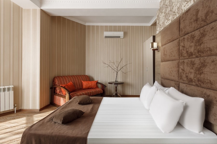 Необходимая современная мебель: сейф, мини-холодильник, телевизор, сплит-система,