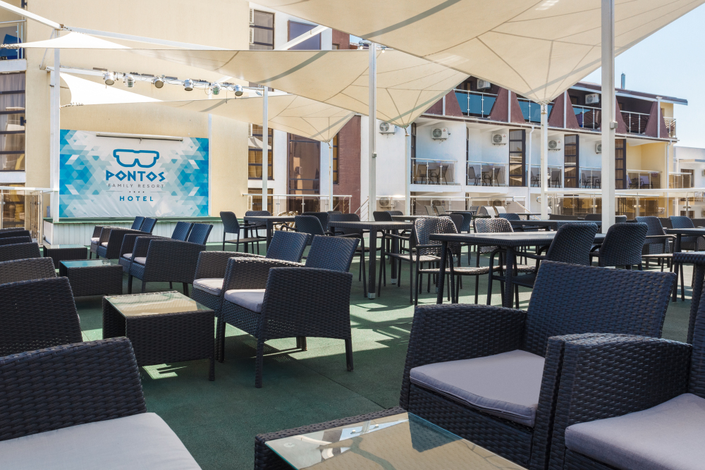 бассейнами и тренажерным залом Pontos Family Resort Hotel 4* находится, в центре