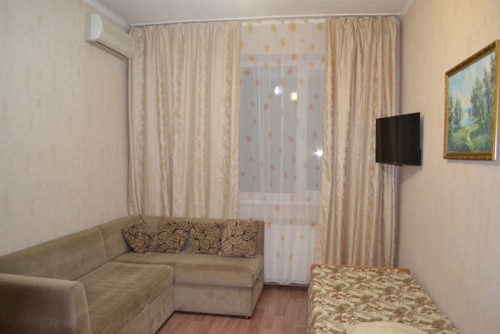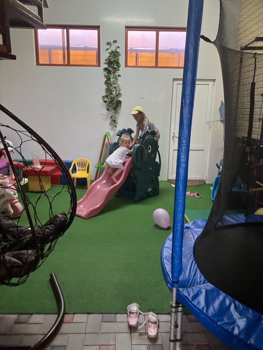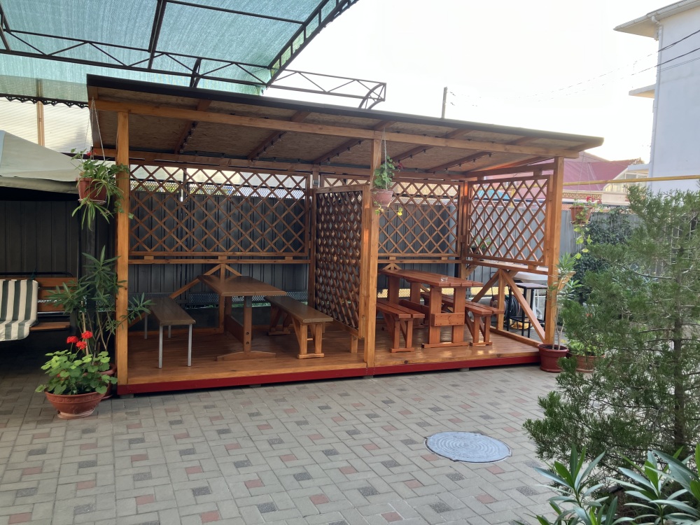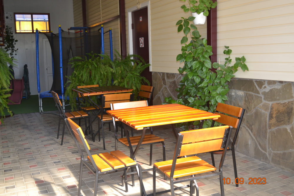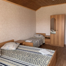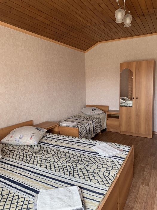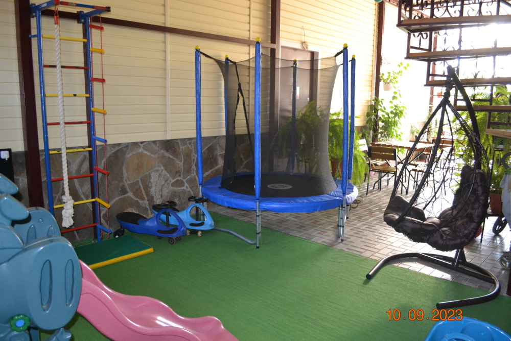 Номера гостевого дома рассчитаны на проживание семей от 4 до 6 человек, оснащены необходимой мебелью, имеют отдельный санузел, укомплектованы требуемой техникой и сплит-системой. В распоряжении постояльцев двухэтажная веранда с шезлонгами и удобными креслами, комната отдыха, оснащенная теннисным столом и бильярдом. Для приготовления пищи имеется комфортная кухня с современным техническим оснащением, также предусмотрены столовая и гостевой зал. Гости, прибывшие на собственном автомобиле, могут оставить его на стоянке около дома. Для других приезжающих оказываются услуги встречи в аэропорту или на вокзале. Для детей есть все необходимое: игрушки, качели, каталки, батут, горка. Предоставляем детские прогулочные коляски - бесплатно.
