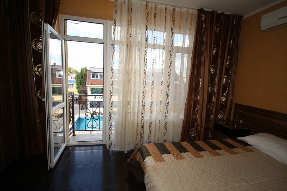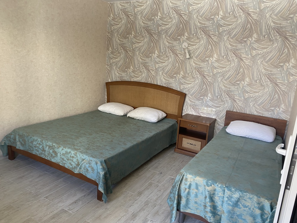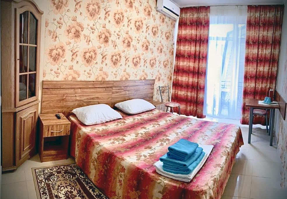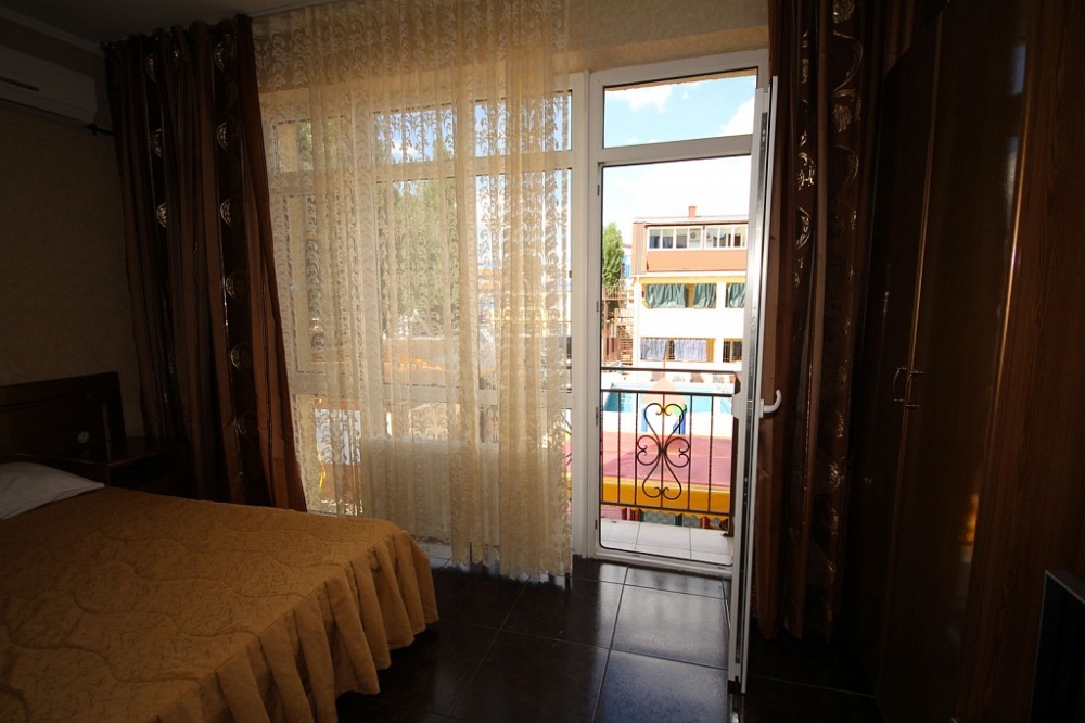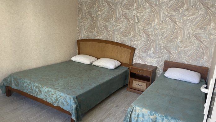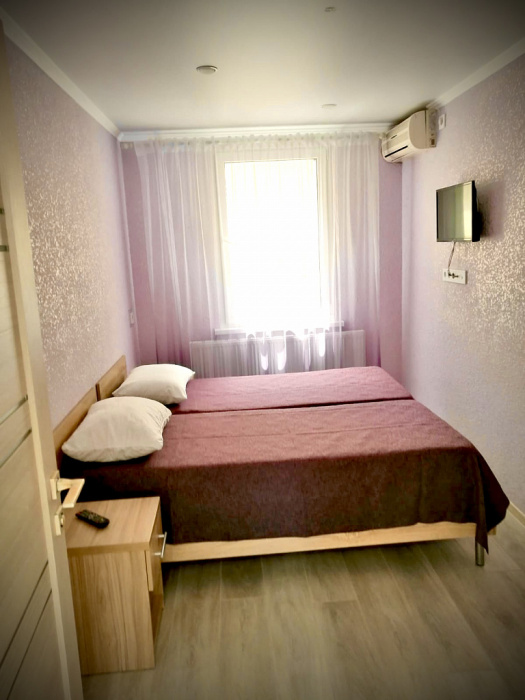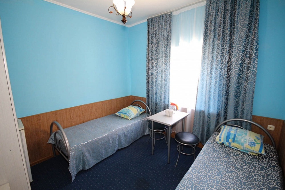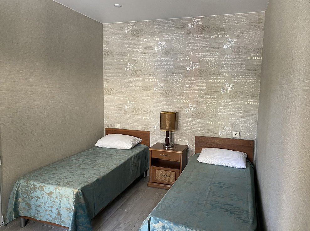 Две односпальных или 2-спальная кровать, уточняйте при бронировании. Некоторые номера с балконом.