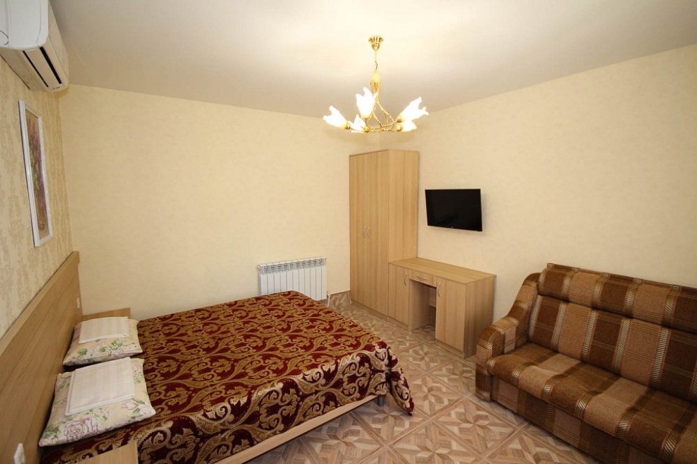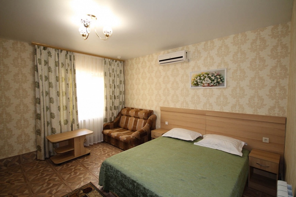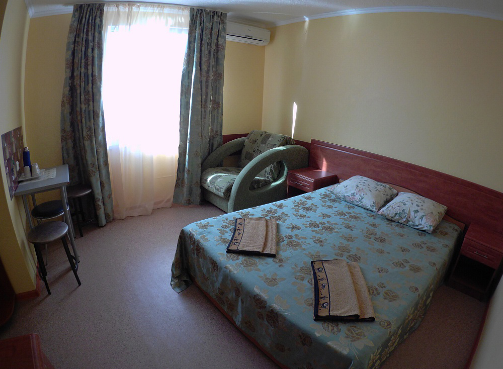 В номере двуспальные или односпальные кровати, кресло-кровать.