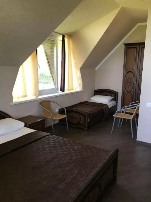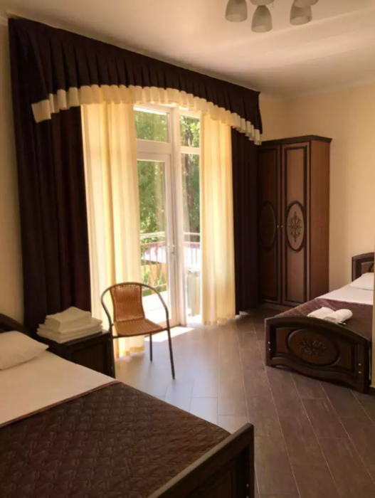 Для проживания гостей предлагаются трехместные номера «стандарт», двухкомнатные номера «люкс», в новом пятиэтажном корпусе, комфортном. В номерах: ТВ, холодильники, санузлы, сплит-системы. В двухэтажном здание в номерах: ТВ, холодильники, санузлы, кондиционеры.