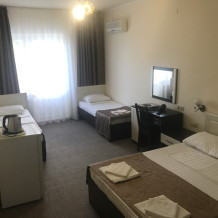 Гостевой дом «Ташир» находится в курортной зоне Джемете, с широкими пляжами и знаменитыми дюнами. К услугам наших гостей предлагаем 2-х, 3-х и 4-х местные номера с удобствами, оборудованные телевизором, холодильником, сплит-системой, сейфом, необходимой мебелью, феном. Все номера с балконами.