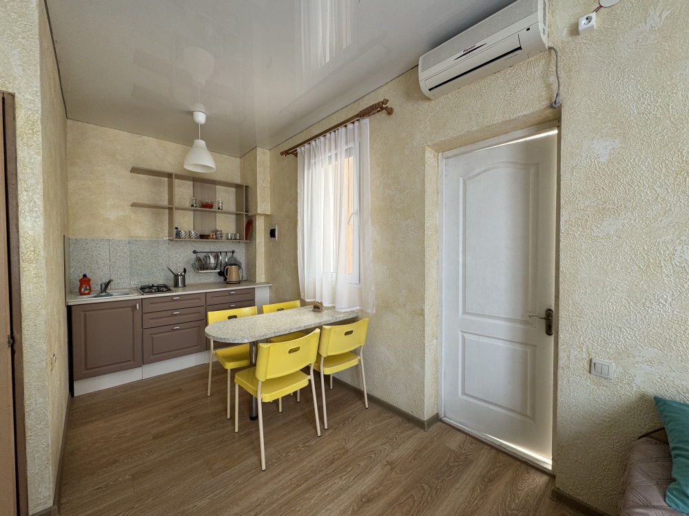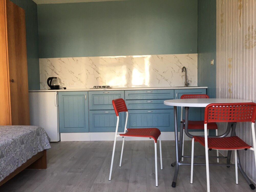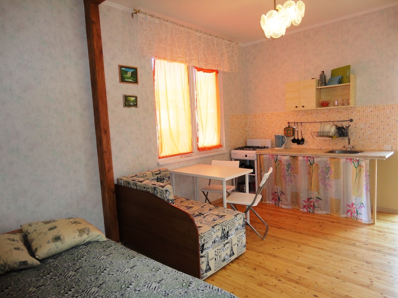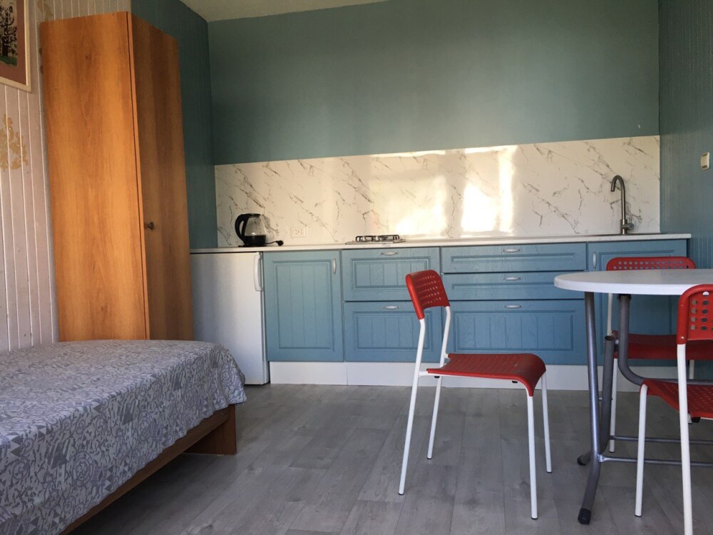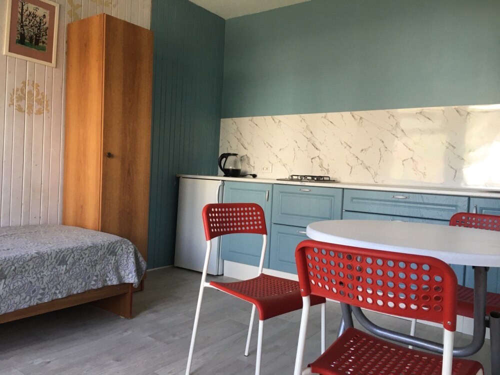 Двухкомнатный Двух-трёхместный уютный номер со всеми удобствами. В номере кухня,санузел, телевизор , кондиционер, двуспальная кровать, односпальная кровать,шкаф, тумбочки.
