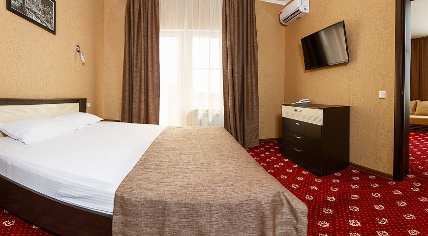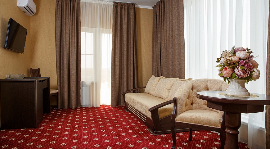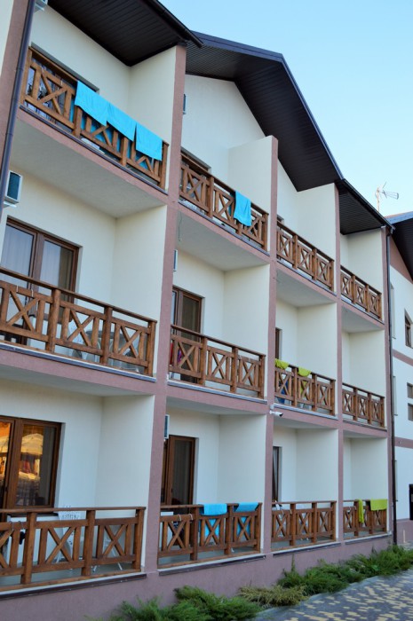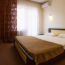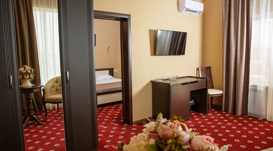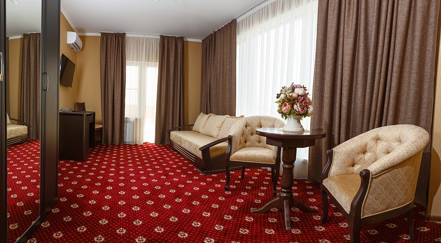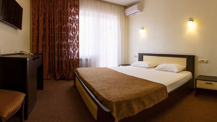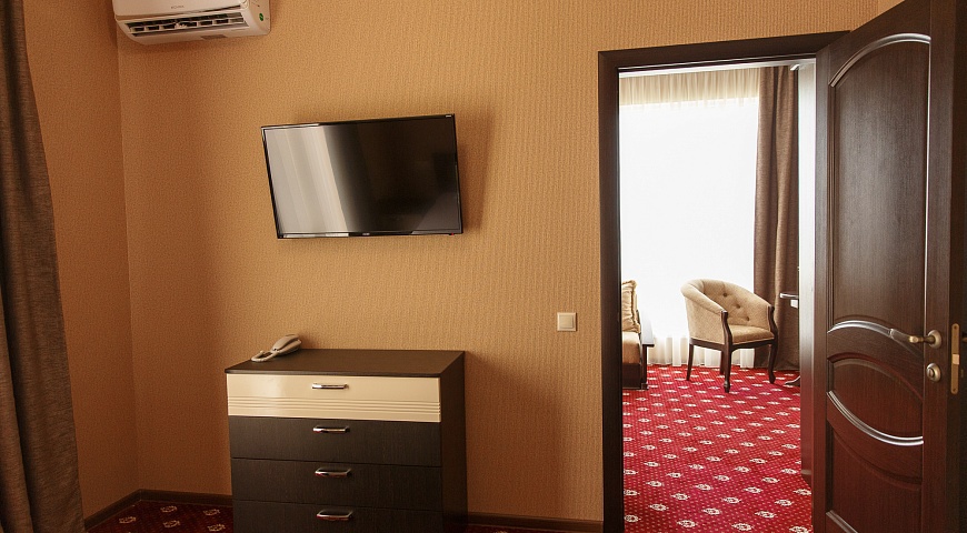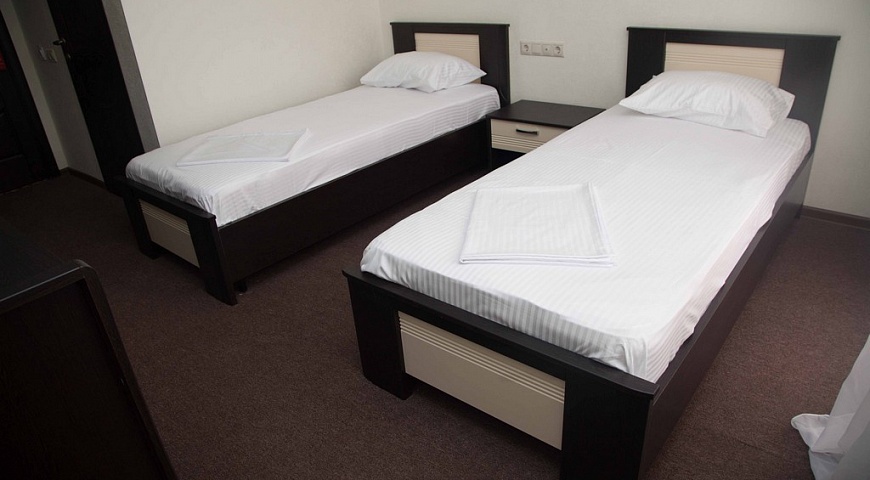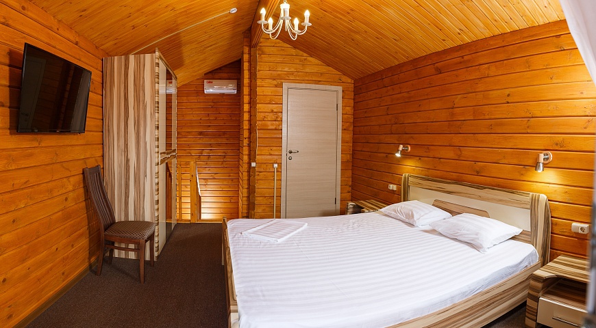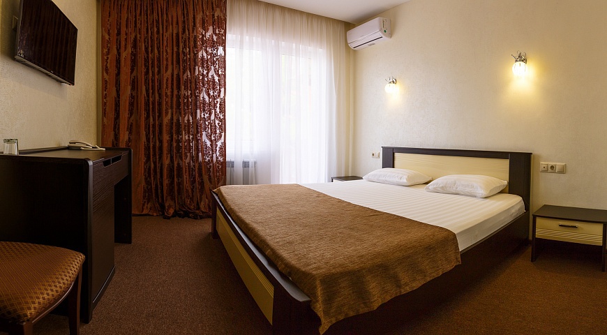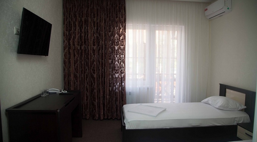 Каждый номер состоит из двух комнат (спальня и гостиная), оборудован сплит-системой и отдельным санузлом с душем, раковиной и большим зеркалом. Все номера в корпусе имеют лоджии с удобной мебелью для отдыха.