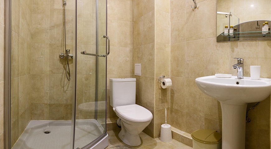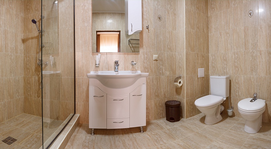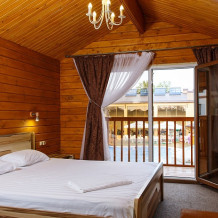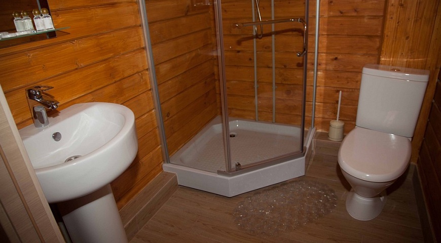 На каждом уровне есть отдельный санузел, оборудованный душем, унитазом и раковиной с большим зеркалом. При желании вместимость номера можно увеличить с помощью дополнительного места (еврораскладушка). Максимальное количество гостей – 5.