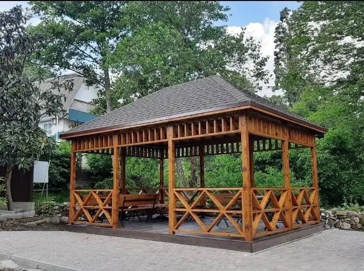 Есть место для отдыха и автостоянка. На территории для наших гостей: летняя кухня, беседка, мангал, тандыр, казан, столики под навесом, работает Wi-Fi.