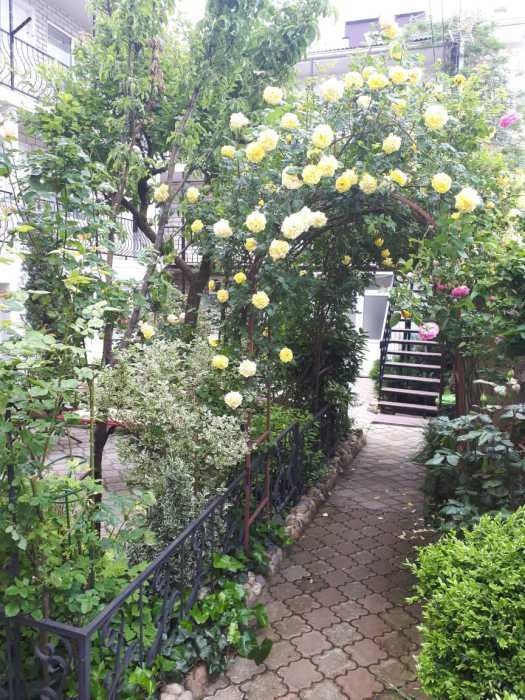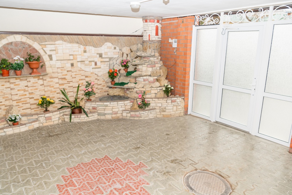 На территории нашего гостевого дома есть небольшой зеленый виноградный дворик со столиками для отдыхающих. Большой ухоженный двор с фонтаном, водопадом, виноградная беседка, цветы. Организованно комплексное домашнее питание за отдельную плату, возможность готовить самим на двух оборудованных кухнях, а так же приготовление шашлыка на заказ.