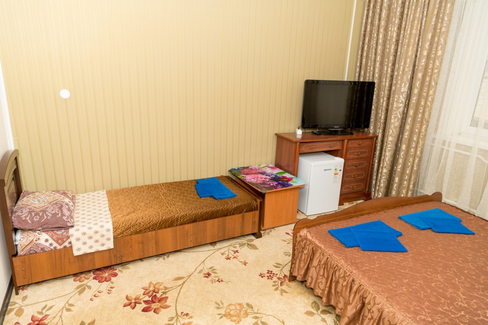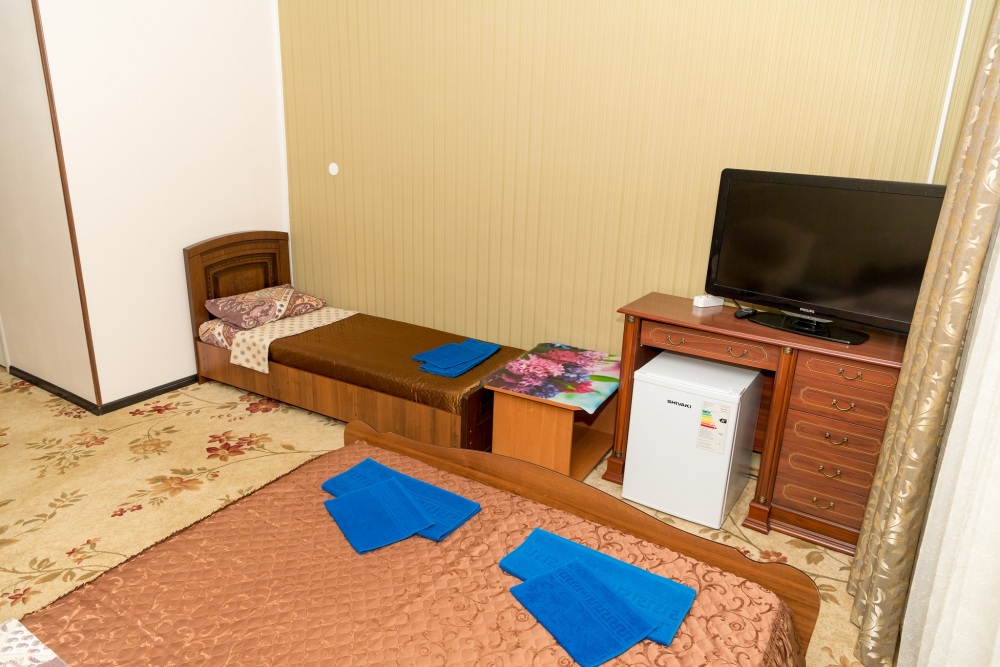 В номере эконом класса: холодильник, телевизор, вентилятор. Душ и туалет для этой категории номеров располагается на этаже на несколько номеров.