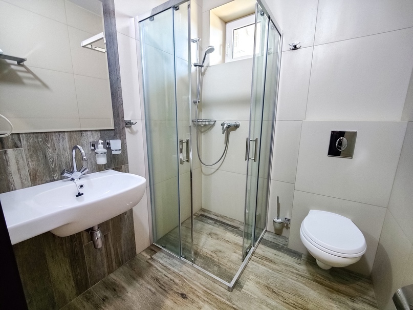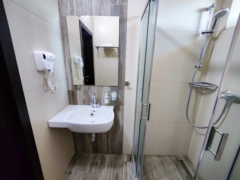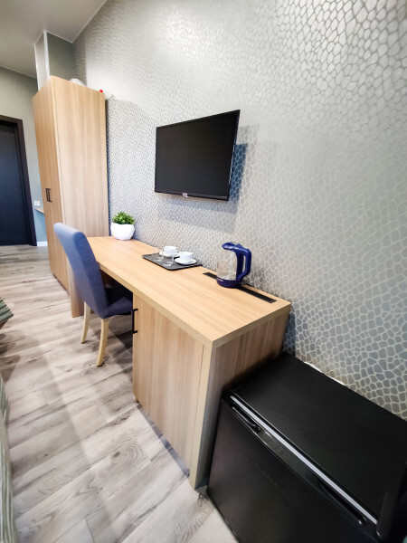 Для каждого гостя свой набор полотенец и белья, в номере душевая комната с банными принадлежностями, холодильник, стол, зеркало, шкаф. Телевизор и высокоскоростной интернет для работы и отдыха.