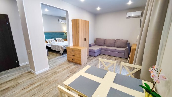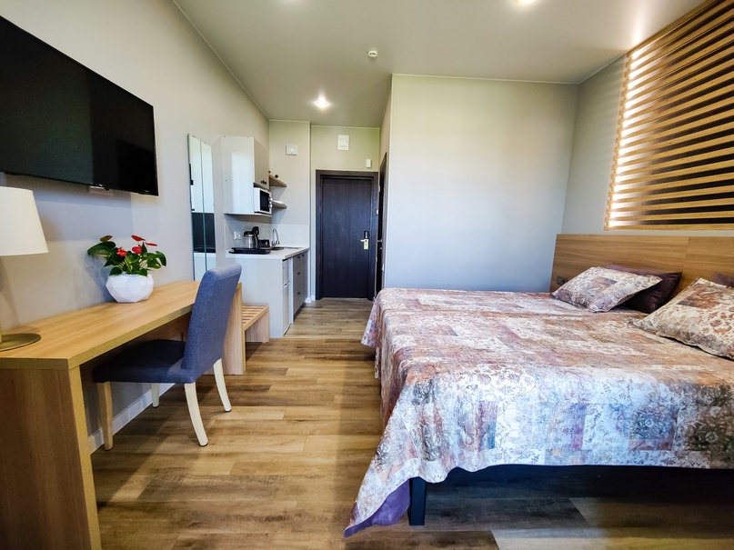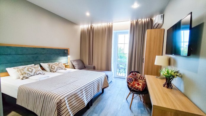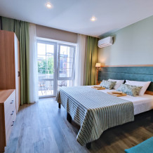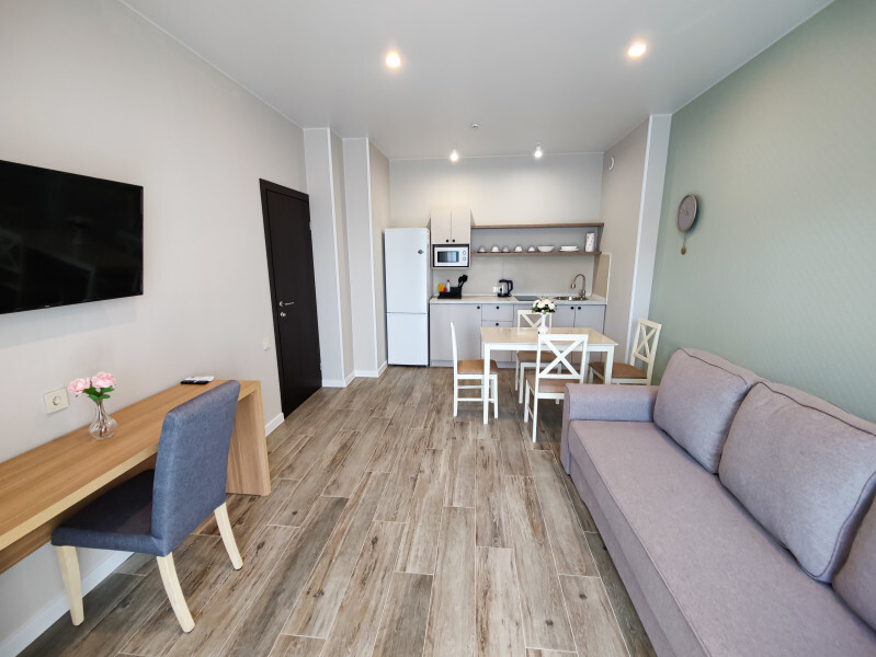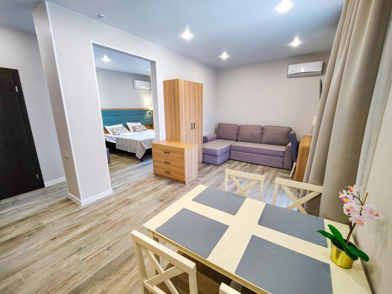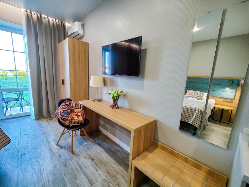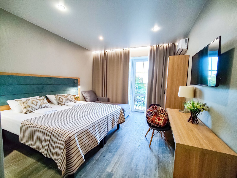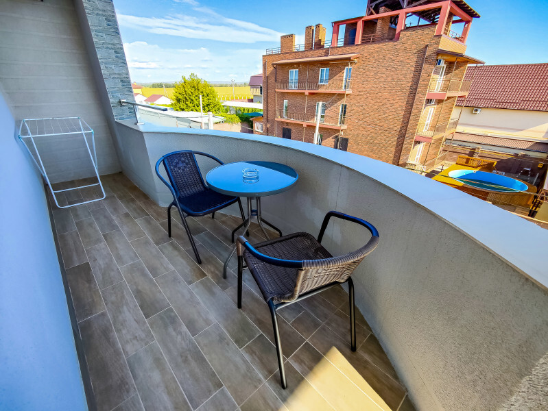 Прекрасный номер с террасой и кухней рассчитан на комфортное проживание до 5 человек. Оборудован всей необходимой техникой и мебелью для комфортного проживания.