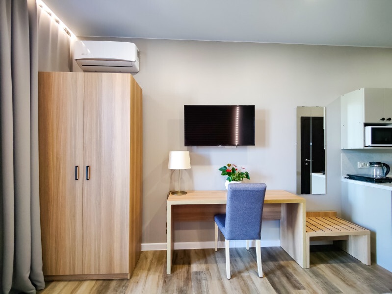 Телевизор и высокоскоростной интернет для работы и отдыха.