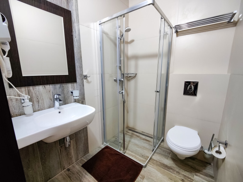 Для каждого гостя свой набор полотенец и белья, в номере душевая комната с банными принадлежностями, холодильник, стол, зеркало, шкаф.