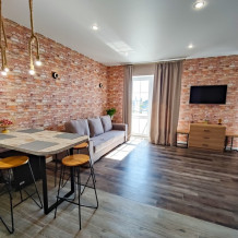 Прекрасные апартаменты с террасой и кухней рассчитаны на комфортное проживание до 3 человек. Оборудованы всей необходимой техникой и мебелью для комфортного проживания.