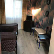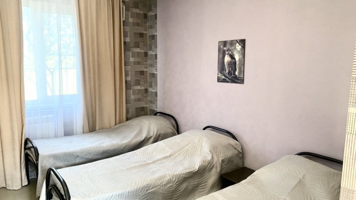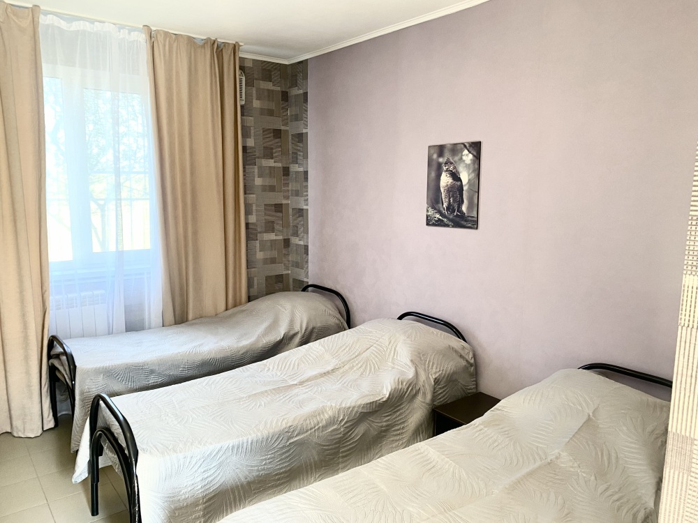 Номерной фонд состоит из номеров стандартной категории, где есть все необходимое для уютного проживания и вмещают в себя от 2-х до 4-х спальных мест. В каждом номере санузел с душевой кабиной (горячая/холодная вода круглосуточно), телевизор, холодильник, кондиционер, полный набор мебели. Есть номера с двуспальной кроватью.