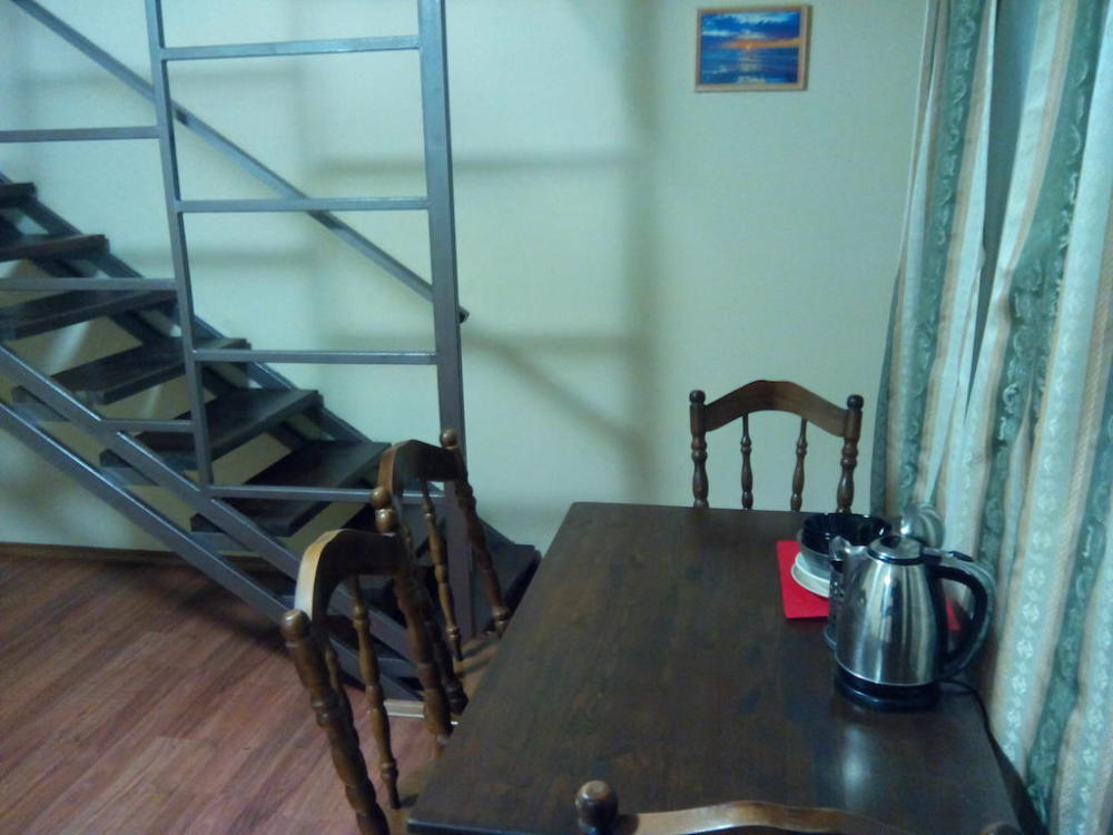 Наша гостиница удобно расположились на улице Калинина. Удобство вызвано тем, что в радиусе 200 метров находятся: пляж, магазинчики, столовые. В шаговой доступности аквапарк и дельфинарий. Предлагается размещение в двухуровневых номерах.