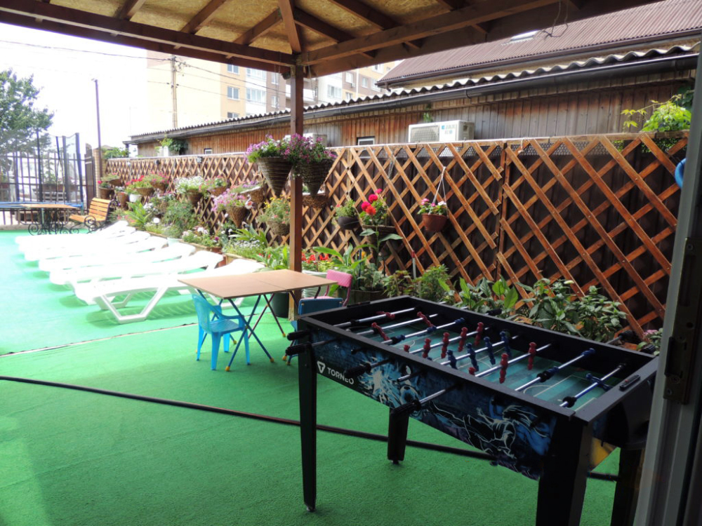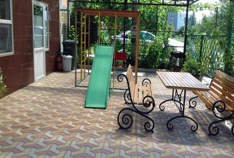На территории гостевого дома - два бассейна с подогревом воды (детский и взрослый) с шезлонгами и креслами для принятия солнечных ванн и отдыха. Во дворе гостевого дома: батут, качели, горка, турник, кольца, столики для рисования и лепки , телевизор для просмотра мультфильмов. Дети принимаются с 1 года.