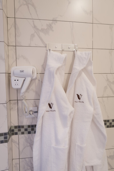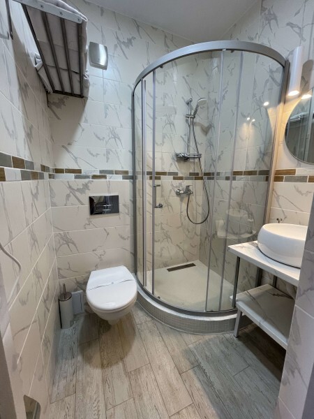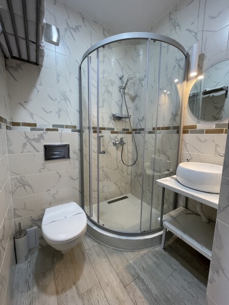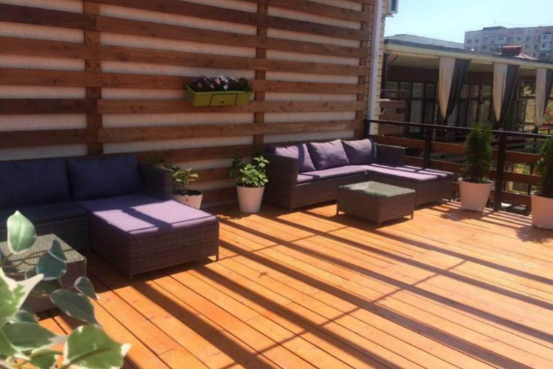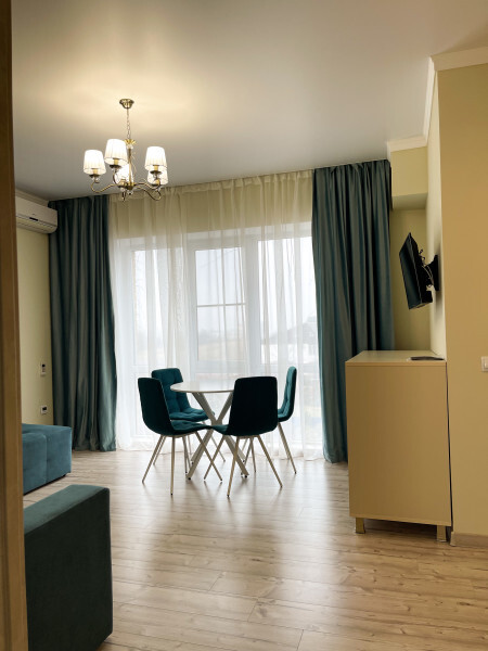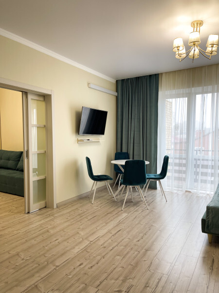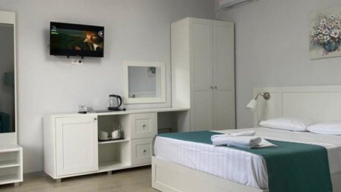 В гостевом доме есть просторные, индивидуальные номера повышенной комфортности, из них некоторые имеют собственные террасы. Стены дополнительно утеплены, система отопления «тёплый пол» в осенне–зимне–весенний период. Специализированная гостиничная мебель: диваны, шкафы, кровати, тумбы, столы, стулья изготовлены из экологически чистых материалов, отвечающих европейским стандартам качества и безопасности. Холодильные камеры, жидкокристаллические телевизоры, индивидуальная система кондиционирования, круглосуточно холодная и горячая вода. Совмещенный санузел с необходимым набором туалетных принадлежностей, фен. Апартаменты оборудованы сейфом, беспроводной сетью интернет и системой коллективного приёма телевидения. Дополнительно предоставляется детская кроватка и детский стульчик на без оплатной основе.